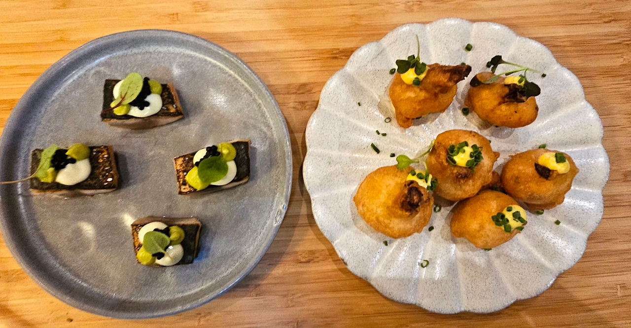이나투 비스트로는 브라가 번화가에서 살짝 벗어난, 조용하고 고즈넉한 골목길에 자리한다. 화려함보다는 절제된 세련미가 돋보이는 외관은 은은한 호기심을 자극했다. 안으로 들어서자 따뜻한 조명과 아늑한 공간감이 우리를 감쌌다. 짙은 원목과 현대적인 디자인이 조화를 이루는 인테리어는 편안하면서도 우아한 분위기를 연출했고, 벽면의 추상화와 은은한 재즈 선율은 이곳이 미식과 예술이 공존하는 공간임을 말해주는 듯했다.
