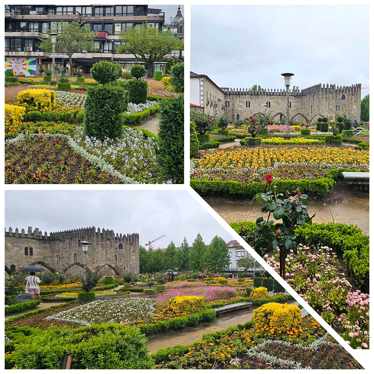대성당 맞은편으로 고요하면서도 화려한 산타 바바라 정원(Jardim de Santa Bárbara)이 빗물에 젖은 채 펼쳐져 있었다. 중세풍 구 대주교 관저를 배경으로 절정을 맞은 계절의 꽃들이 물기를 머금고 더욱 선명하게 피어나 있었다. 장미의 붉은빛과 라벤더의 보랏빛이 빗방울에 반짝이며, 진한 흙냄새와 촉촉한 꽃향기가 공기 중에 번졌다. 우산 끝에서 떨어지는 물방울이 옷깃을 적시고, 발밑의 돌길은 빗물로 미끄러워 조심스럽게 걸어야 했다. 비 때문에 조금 불편하긴 했지만, 그 덕분에 정원은 한층 고요했고, 물기 어린 풍경 속에서 시간이 더디게 흘렀다.