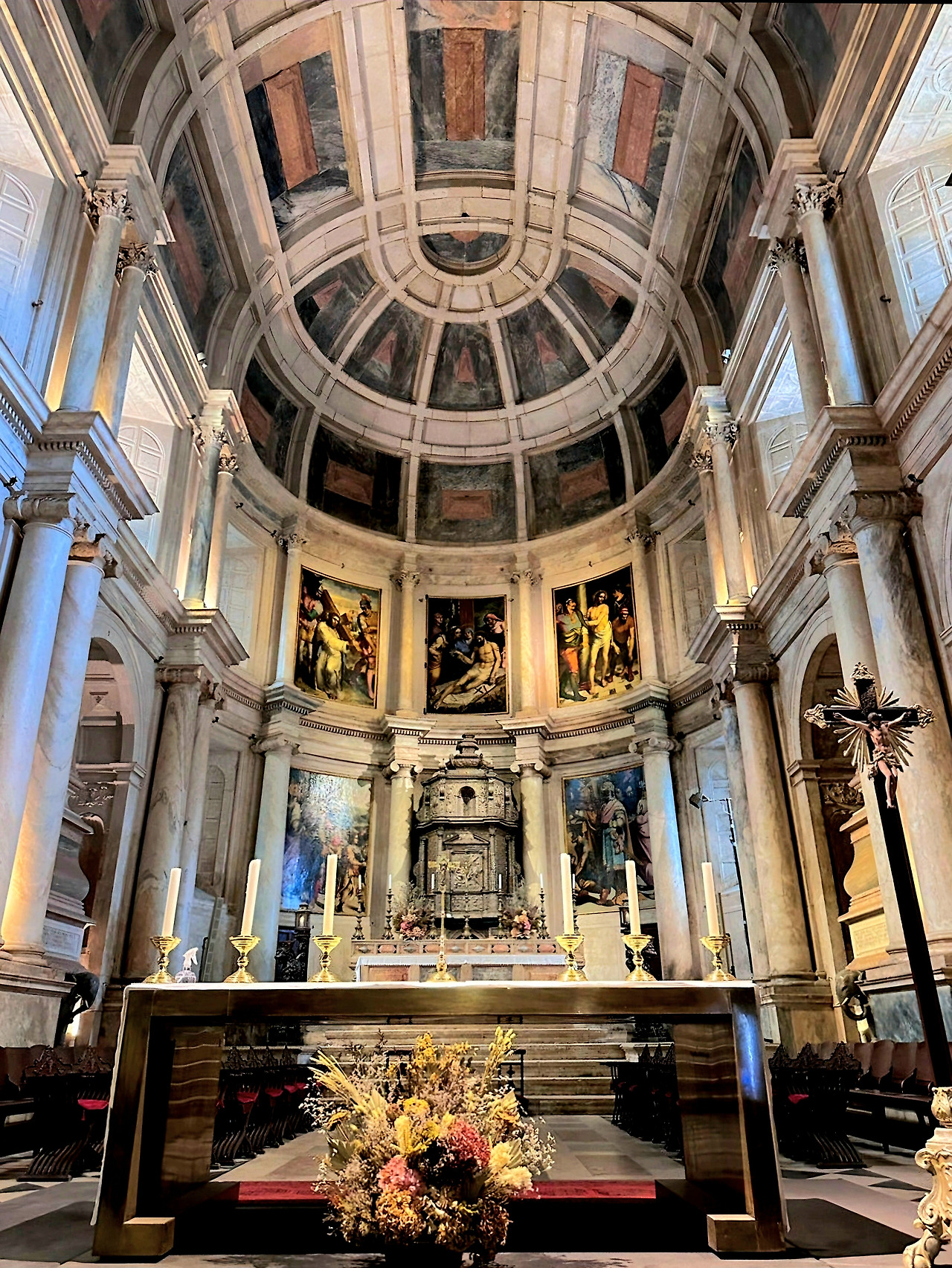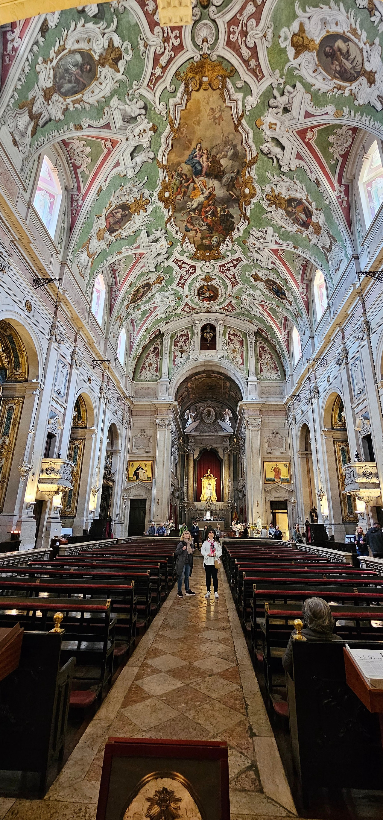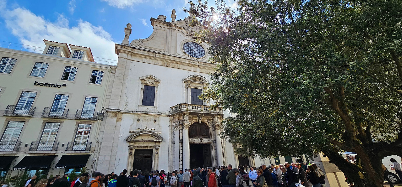 시아두 거리의 좁은 골목을 걷다 보면, 베르트랑 서점 바로 옆에 순교자들의 성모 성당(Basílica de Nossa Senhora dos Mártires)이 조용히 자리하고 있다. 겉보기에는 작은 건물 같지만, 그 문턱을 넘어서는 순간 시간이 겹쳐 있는 느낌이 전해진다. 마치 골목의 현재와 성당의 과거가 한 공간에서 만나는 듯했다.