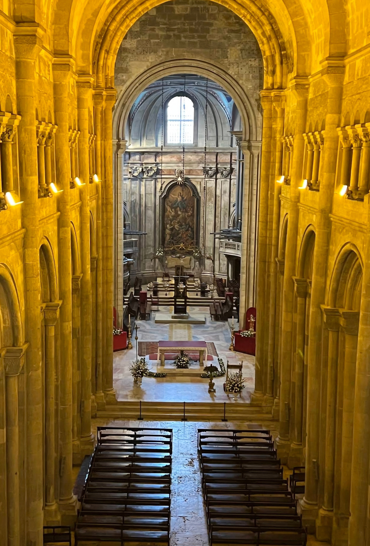 나는 뒤쪽 벤치에 조용히 앉아 성당의 정적을 온몸으로 느꼈다. 그리고는 이번 여행이 무탈하게 마무리되기를 그리고 가족들의 건강을 위하여 기도했다. 기도대 위의 작은 촛불 하나, 제단을 은은하게 비추는 조명, 기둥에 새겨진 문양들이 모두 오랜 세월을 지나온 흔적처럼 다가왔다. 바로 옆 서점에서 책장을 넘기던 손길과 성당 안의 고요한 공기가 함께 존재하는 이 순간을 느끼며, 좁은 골목 한쪽에 담긴 리스본의 깊은 시간과 켜켜이 쌓인 이야기들을 조용히 마주할 수 있었다.