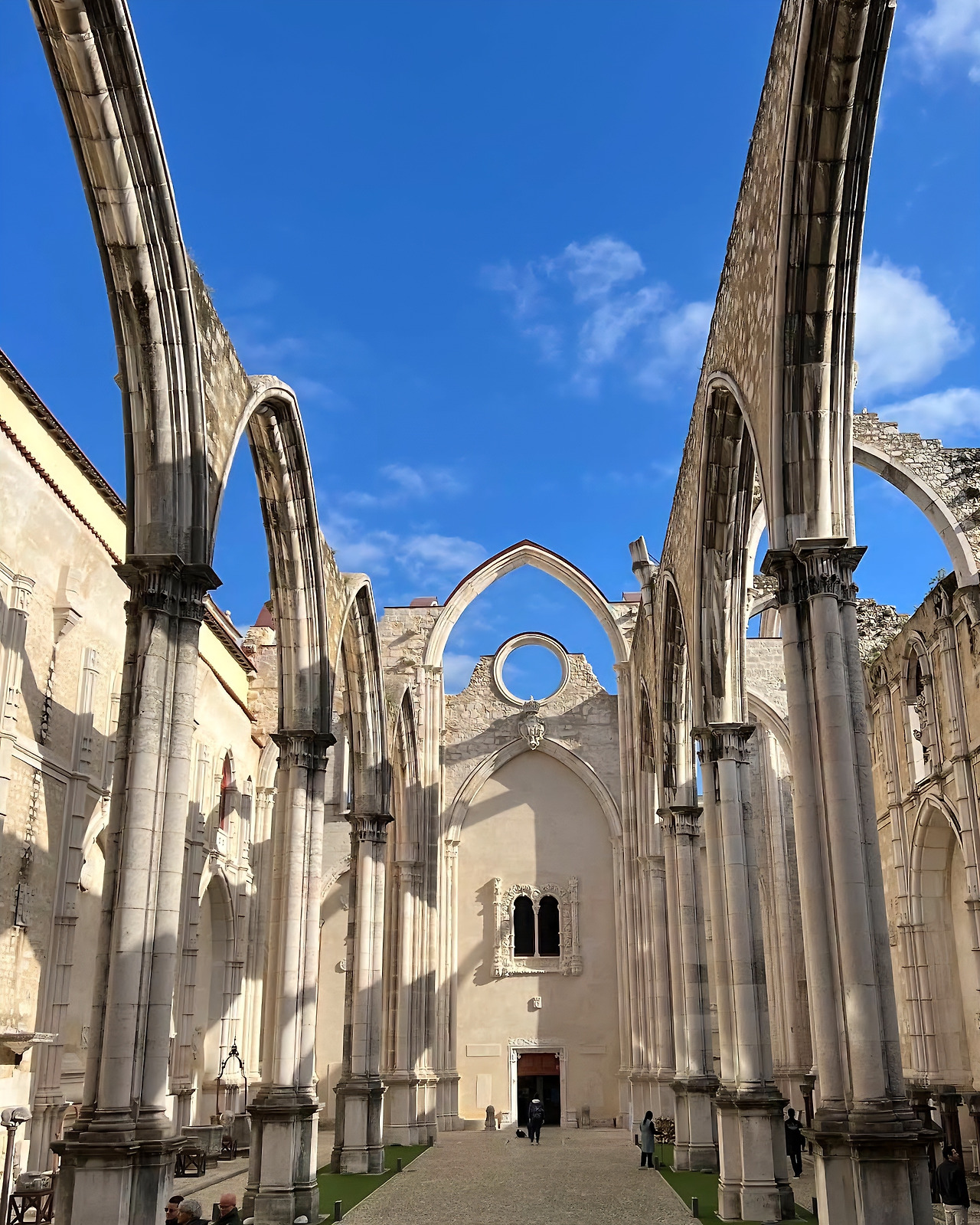 14세기, 영웅 누누 알바레스 페헤이라가 세운 카르무 수녀원(Museu Arqueológico do Carmo)은 한때 리스본 최대의 성당이었다. 고딕 양식의 웅장한 건축물로, 중세 포르투갈의 종교적 권위와 예술적 성취를 상징하는 건물이었다. 그러나 1755년 11월 1일, 만성절 미사가 한창이던 그 순간 대지진이 도시를 뒤흔들었고, 거대한 지붕과 상당 부분의 벽체가 무너져 내렸다. 그날 이후 270년이 흐른 지금까지도, 카르무 수녀원은 그 상처를 그대로 간직한 채 서 있다.