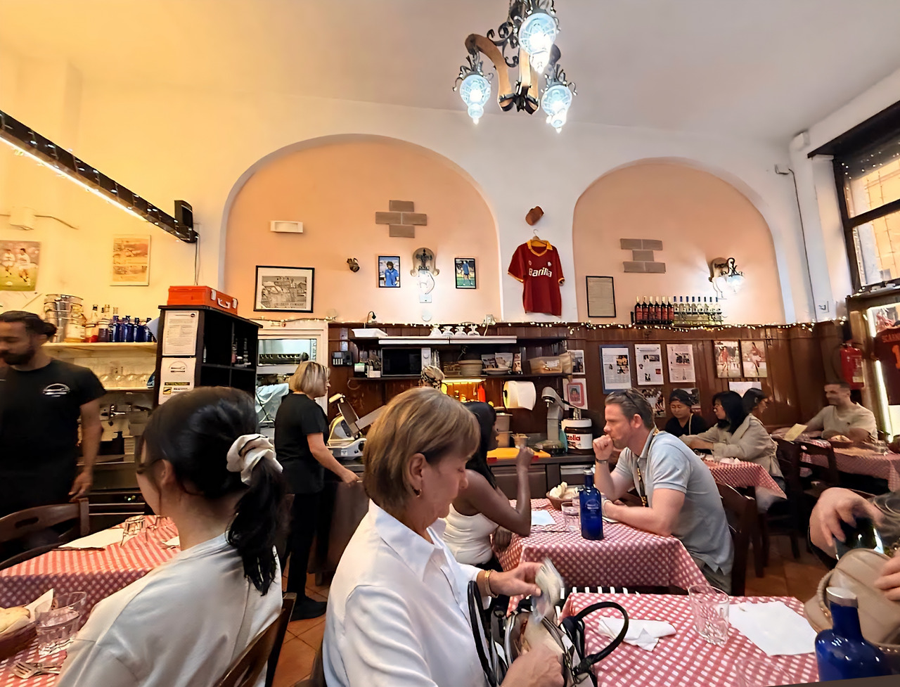 카페에서 간단히 아침을 해결했을 뿐인데, 10시 반이 채 되기도 전에 허기가 밀려왔다. 급히 검색해 찾아낸 곳은 트레비 분수 근처의 식당 '트라토리아 델라 스탐파'. 오픈 시간이 11시라, 어쩔 수 없이 15분 일찍 도착해 본의 아니게 '오픈런' 대열에 합류했다. 문이 열리자마자 가장 먼저 자리에 앉았고, 한국식 속도로 주문부터 해결하려 했지만 종업원은 어리둥절한 표정으로 천천히 자신의 리듬을 유지했다. 다급한 마음을 누르고 그가 다가오기를 기다리는 수밖에 없었다.