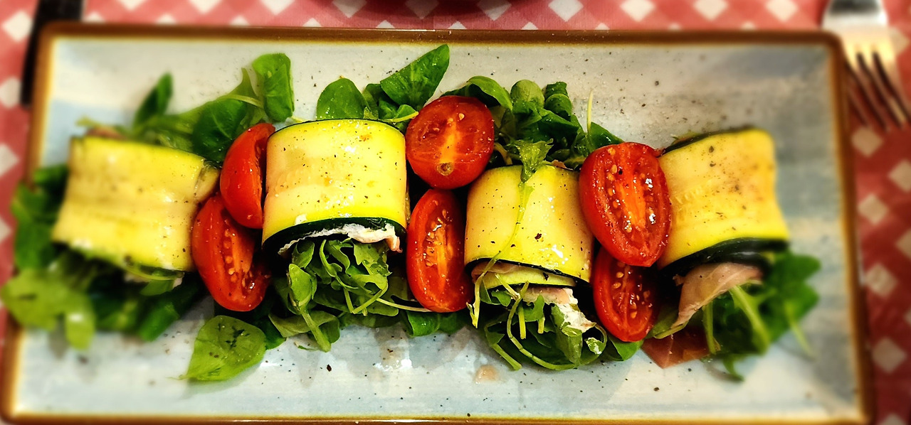 그러나 10여 분 뒤 차례로 나온 요리들은 그 기다림을 충분히 보상할 만큼 훌륭했다. 토마토소스에 적신 가지 롤은 부드러우면서도 깊은 맛이 났고, 특히 주키니 롤은 한국에 돌아가면 꼭 한 번 따라 만들어 봐야겠다는 마음이 들 정도로 인상적이라, 재료를 자세히 살피고 사진까지 남겼다. 속을 채운 리코타 치즈와 허브의 조화, 겉면을 살짝 구워낸 질감까지, 단순해 보이는 요리 안에 이탈리아 가정식의 정수가 담겨 있었다.