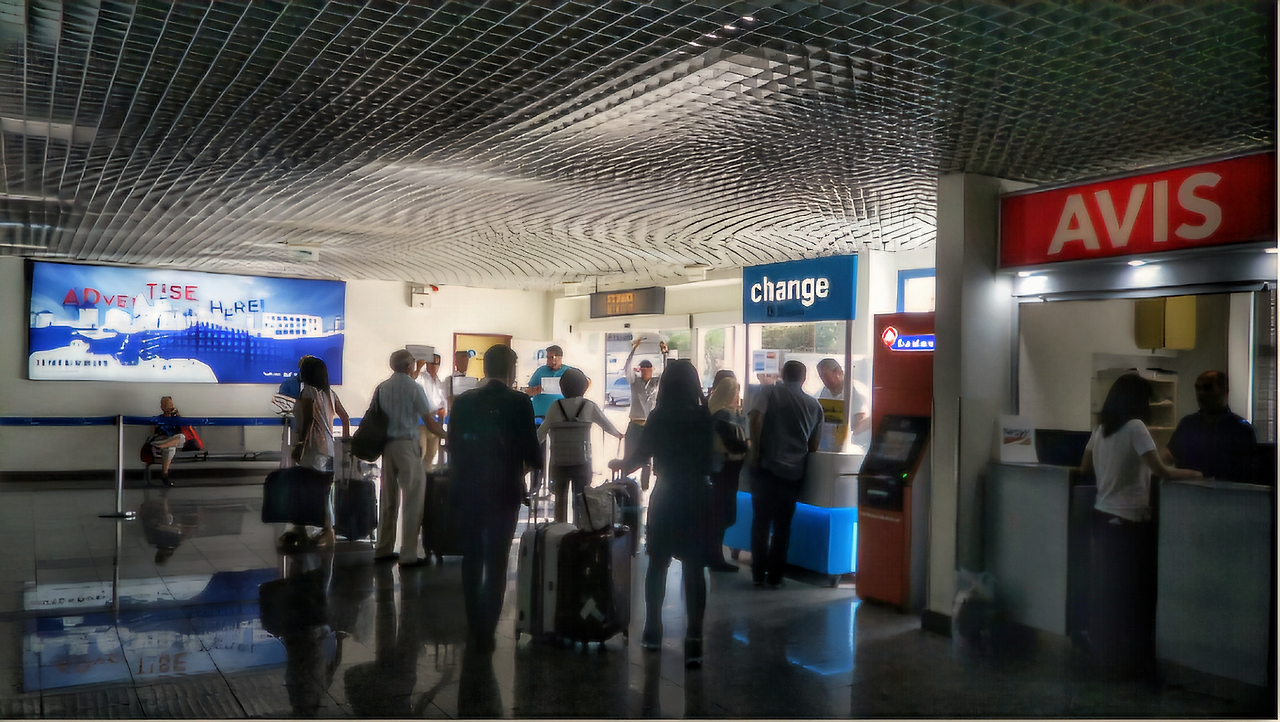 사진 중앙 환전소 옆 종이를 들고 있는 필자