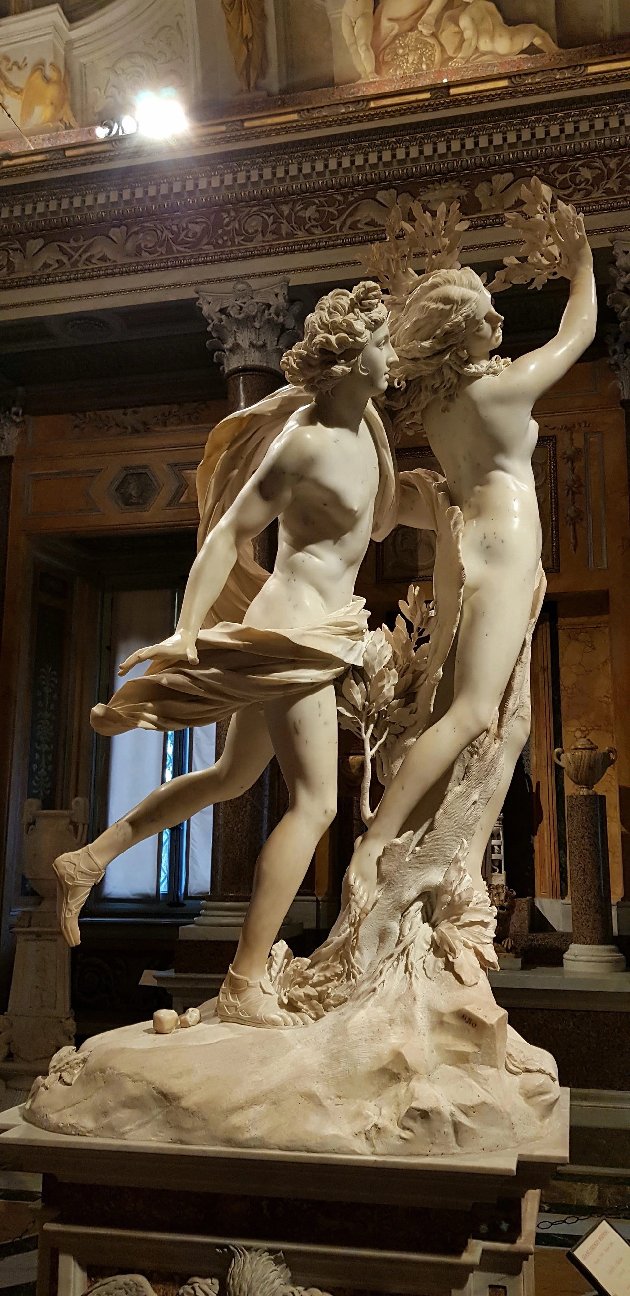 문득 6년 전 보르게세 미술관에 들렀을 때가 떠올랐다. 이 미술관은 베르니니의 초기부터 절정기 작품이 가장 많이 소장되어 있는 곳으로, 로마에서 베르니니의 조각을 감상할 때 필수적으로 방문해야 할 장소다. 그중에서도 《아폴론과 다프네》를 놀라운 눈빛으로 감상하던 내 모습이 오버랩되어 떠올랐다. 베르니니는 신화의 모든 장면 중에서도 가장 극적이고 역동적인 순간—아폴론이 다프네에게 막 손이 닿으려는 찰나, 다프네의 몸이 월계수로 변하기 시작하는 바로 그 순간—을 포착하여 조각으로 표현했다. 이곳 성당의 천사상 역시 그와 같은 베르니니 특유의 생명력이 넘쳐흘렀다.