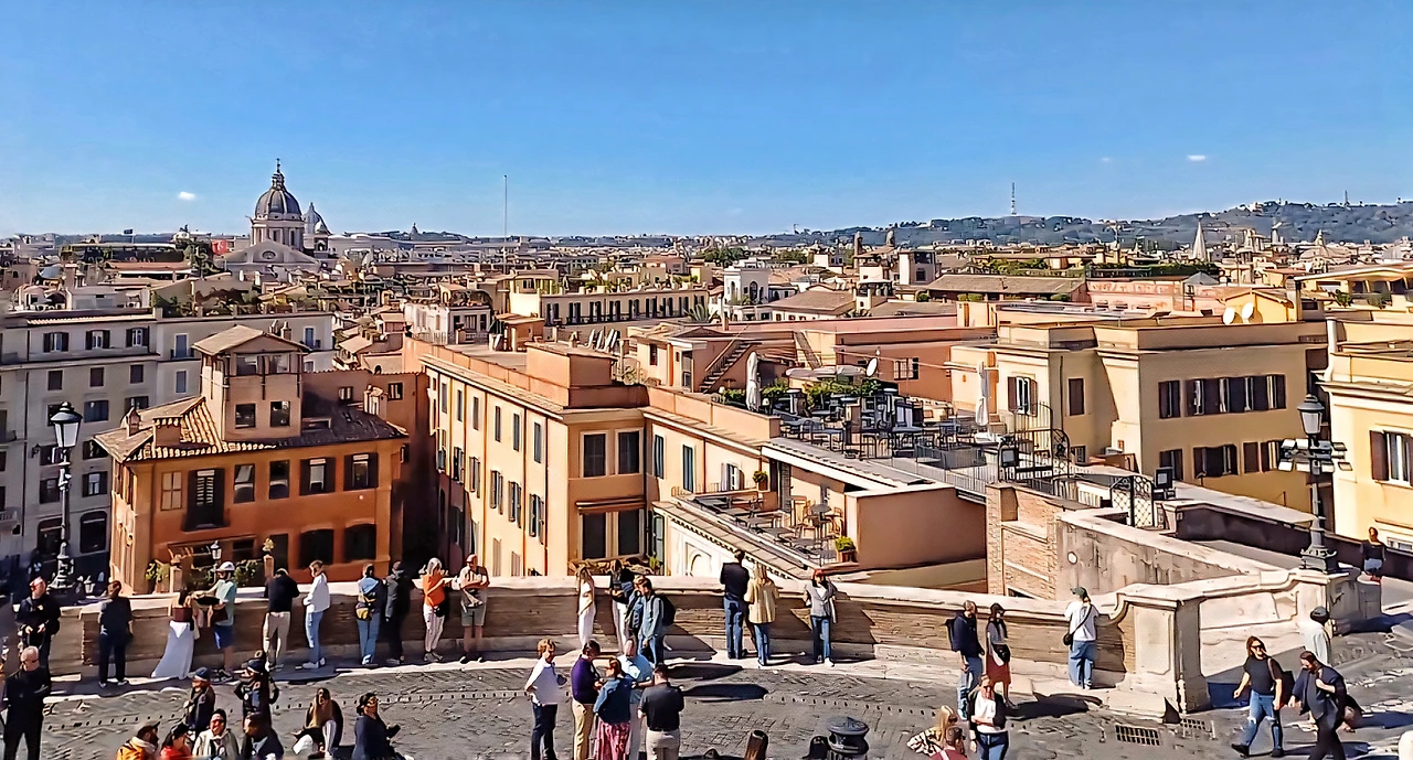 계단을 내려오며 스페인 광장과 로마 시내를 내려다보니, 쾌청한 날씨 덕분에 멀리 베드로 성당의 돔까지 또렷하게 시야에 들어왔다. 인파가 워낙 많아 사진 한 장을 건지기도 쉽지 않았지만, 세계적인 관광지에서 한적함을 기대하는 것 자체가 어쩌면 과한 욕심인지도 모르겠다.