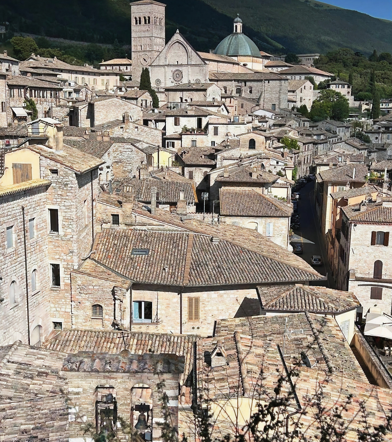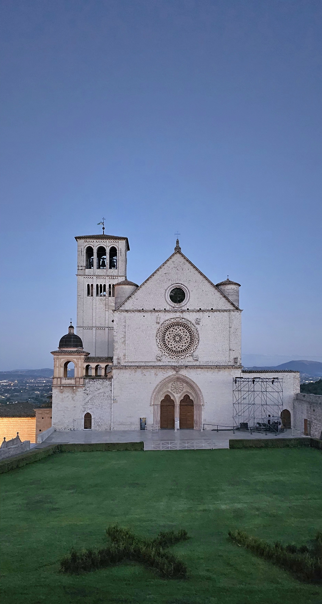 10분쯤 그렇게 분위기에 취해 있는데, 작은 트럭이 광장으로 들어와 모퉁이에 정차하더니 물건을 내리기 시작했다. 아시시의 하루가 시작되는 순간이었다. 나는 곧 성당 앞 광장으로 통하는 계단을 밟으며 올라섰다. 어젯밤 야경을 잠시 감상하긴 했지만, 새벽의 고즈넉한 분위기 속 성당과 주변 풍경은 또 다른 매력으로 다가왔다.