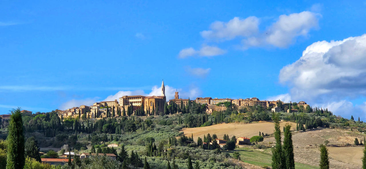 발도르차 지역에는 중세풍의 작은 마을들이 곳곳에 자리하고 있다. 피엔차, 몬탈치노, 몬테풀치아노—각각 독특한 역사와 매력을 지닌 이 마을들이 우리 여행의 하이라이트였다. 아시시에서 예약한 아그리투리스모(농가민박)까지는 80km 거리. 이동 중 내일 오후 방문할 예정인 몬테풀치아노를 지나쳤고, 피엔차가 눈앞에 다가올 즈음, 사이프러스 나무가 줄지어 선 인상적인 농장이 보였다.
