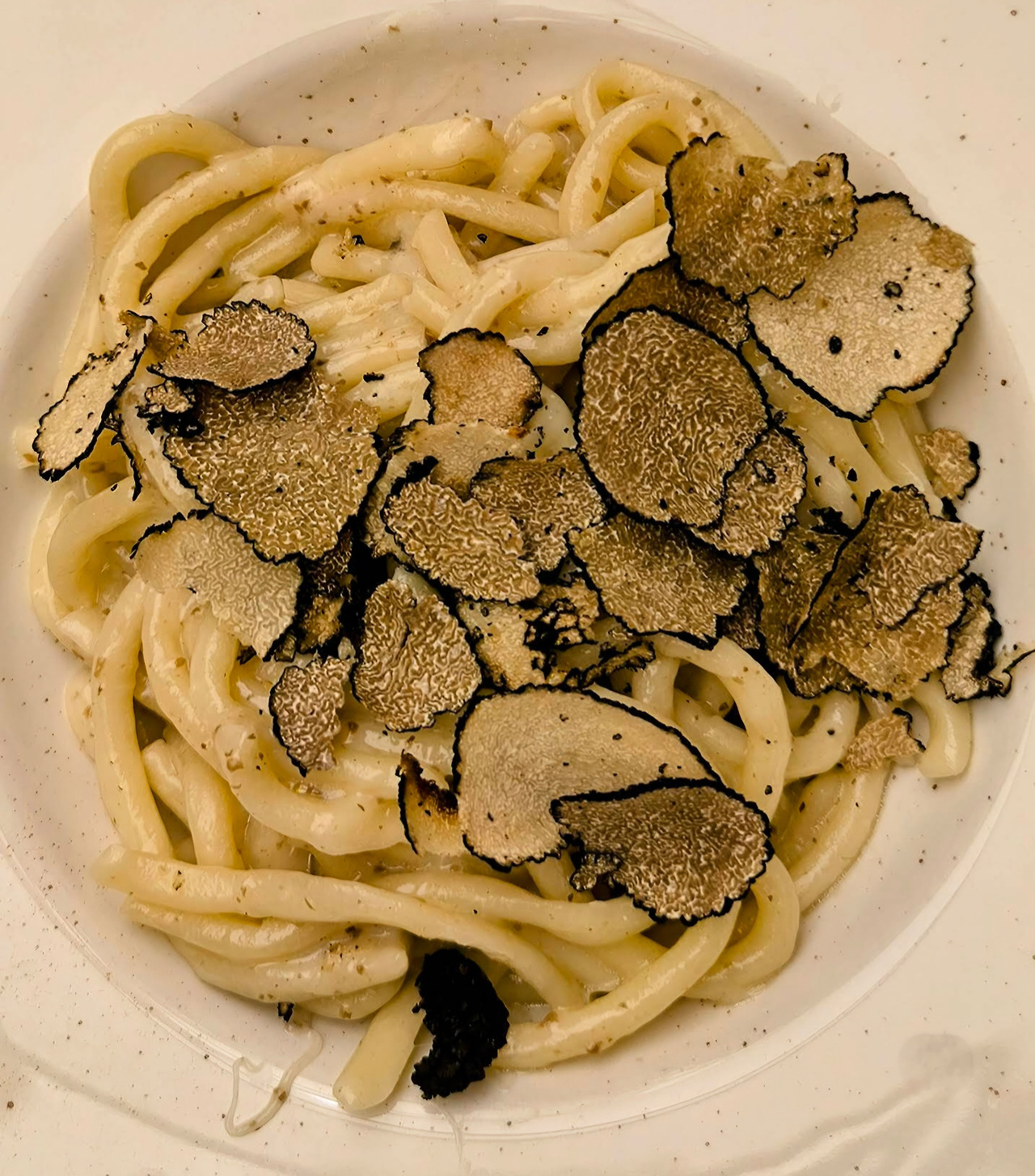 마을을 좀 더 거닐다 보니 배가 고파져서, 예약한 식당(Trattoria La Buca delle Fate)에 예정 시간보다 한 시간이나 일찍 찾아갔다. 혹시 지금 저녁을 먹을 수 있냐고 조심스레 물어보니, 직원이 확인 후 자리로 안내해 주었다. 사실 이 식당은 작년 큰아들 부부가 유럽 여행 중에 우연히 들렀던 곳이었다. 그때 먹었던 트러플 파스타가 너무 맛있어서 '인생 파스타'라고 극찬하며 나에게 강력히 추천했던 것이다. 게다가 구글 평점도 꽤 높아서 우리의 기대감이 한껏 부풀었다.