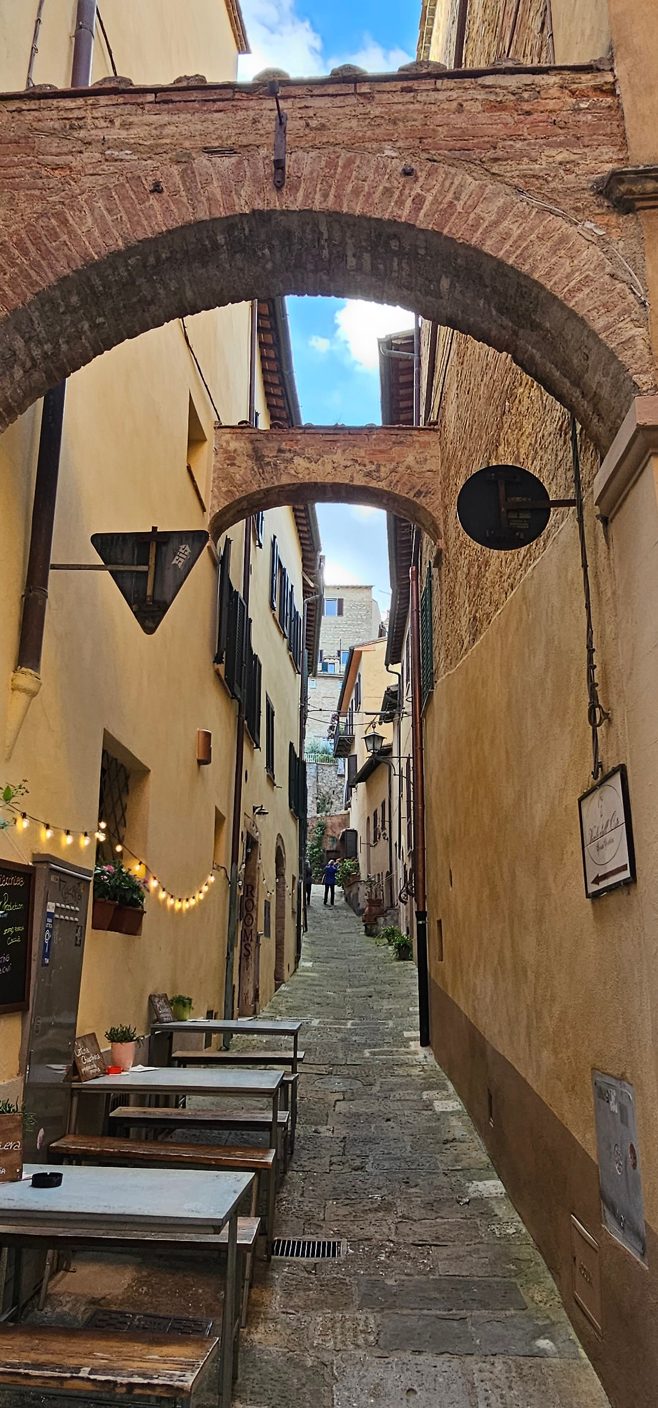 몬테풀치아노는 영화 〈트와일라잇: 뉴문〉의 촬영지로도 유명하다. 특히 두오모와 그란데 광장이 배경으로 등장했던 장면을 여행 프로그램에서 본 기억이 났다. 내부를 볼 수 없는 아쉬움을 뒤로하고, 왔던 골목길을 피해 다른 길을 택했다. 중세 분위기가 가득한 골목들을 조금이라도 더 느껴보고 싶었다. 정취를 만끽하며 걷다 보니 어느새 예약한 식당에 도착했다.