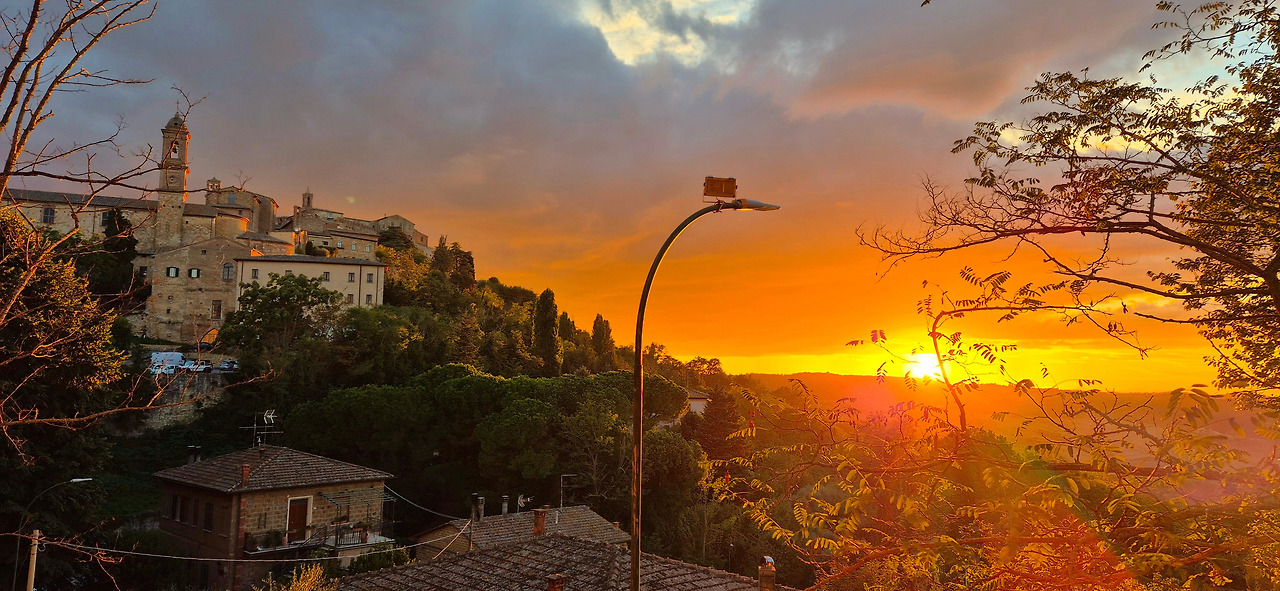 우여곡절 끝에 일행은 주차장 부근으로 돌아와 일몰을 감상했다. 너무나 황홀하고 아름다운 풍경이었다. 전날 피엔차에서 본 일몰도 멋있었지만, 같은 토스카나임에도 불구하고 분위기가 사뭇 달랐다. 어느 쪽이 더 좋다고 단정 짓기 어려울 정도로 각각의 매력이 있었다.