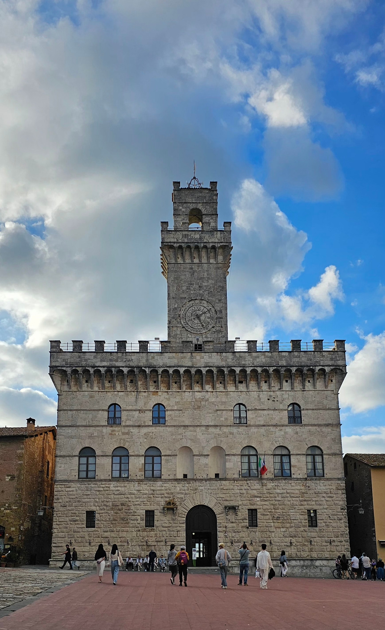이윽고 몬테풀치아노의 핵심 명소인 그란데 광장과 그 중심의 두오모로 향했다. 가는 길에 잠시 방향을 헷갈려 약간 헤매기도 했다. 1600년 전후에 지어진 두오모는 아쉽게도 현재 복원 중이라 임시 휴관 상태였다. 외관을 더 정교하게 장식할 계획이 있었으나 결국 거친 석조물 그대로 미완성인 채 남겨졌다고 한다.