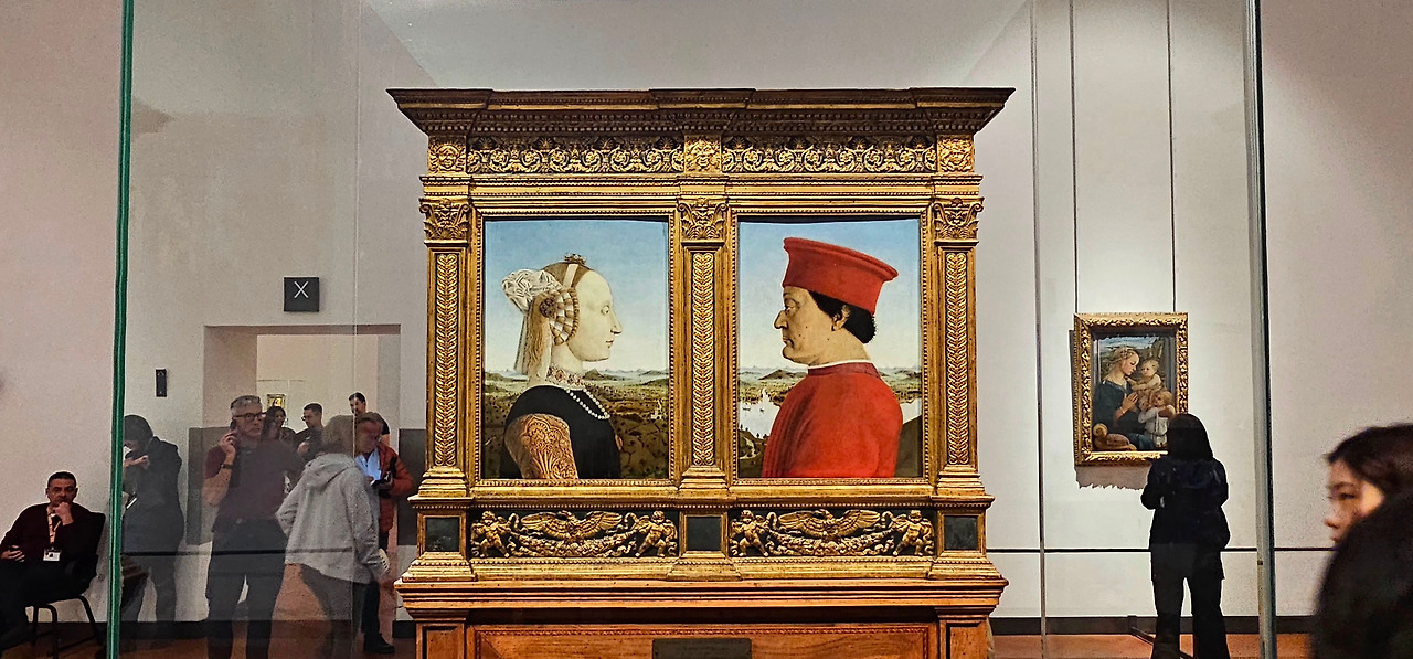 원근법이 적용된 것은 물론, 천사들의 모습이 더욱 입체적이고 사실적으로 표현되어 있었고, 성모의 얼굴과 옷자락에서도 감정의 깊이가 느껴졌다. 단순한 성화를 넘어, 서양 미술사에서 예술의 새로운 장을 연 획기적인 작품이라는 평가를 받는 조토의 마에스타를 직접 보며, 우피치 미술관에 와 있다는 실감이 더욱 깊어졌다.