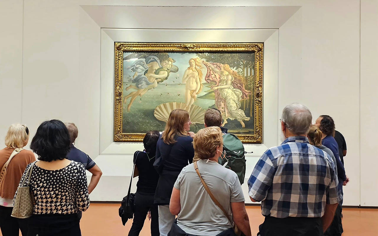 다음으로 감상한 작품은 우피치 미술관에서 가장 유명한 와 〈비너스의 탄생〉이었다. 다음으로 감상한 작품은 우피치 미술관에서 가장 유명한 보티첼리의 〈프리마베라〉와 〈비너스의 탄생〉이었다. 너무나도 유명한 이 작품들을 직접 보게 되니 흥분을 감출 수 없었다. 어쩌면 우피치 미술관은 보티첼리의 작품을 감상하기에 최고의 장소인지도 모른다. 보티첼리는 특히 메디치 가문의 후원을 받으며 많은 작품들을 남겼는데, 이 두 작품 역시 메디치 가문을 위해 그려졌다니 그 연관성을 짐작할 수 있다. 다. 너무나도 유명한 이 작품들을 직접 보게 되니 흥분을 감출 수 없었다. 어쩌면 우피치 미술관은 보티첼리의 작품을 감상하기에 최고의 장소인지도 모른다. 보티첼리는 특히 메디치 가문의 후원을 받으며 많은 작품들을 남겼는데, 이 두 작품 역시 메디치 가문을 위해 그려졌다니 그 연관성을 짐작할 수 있다.