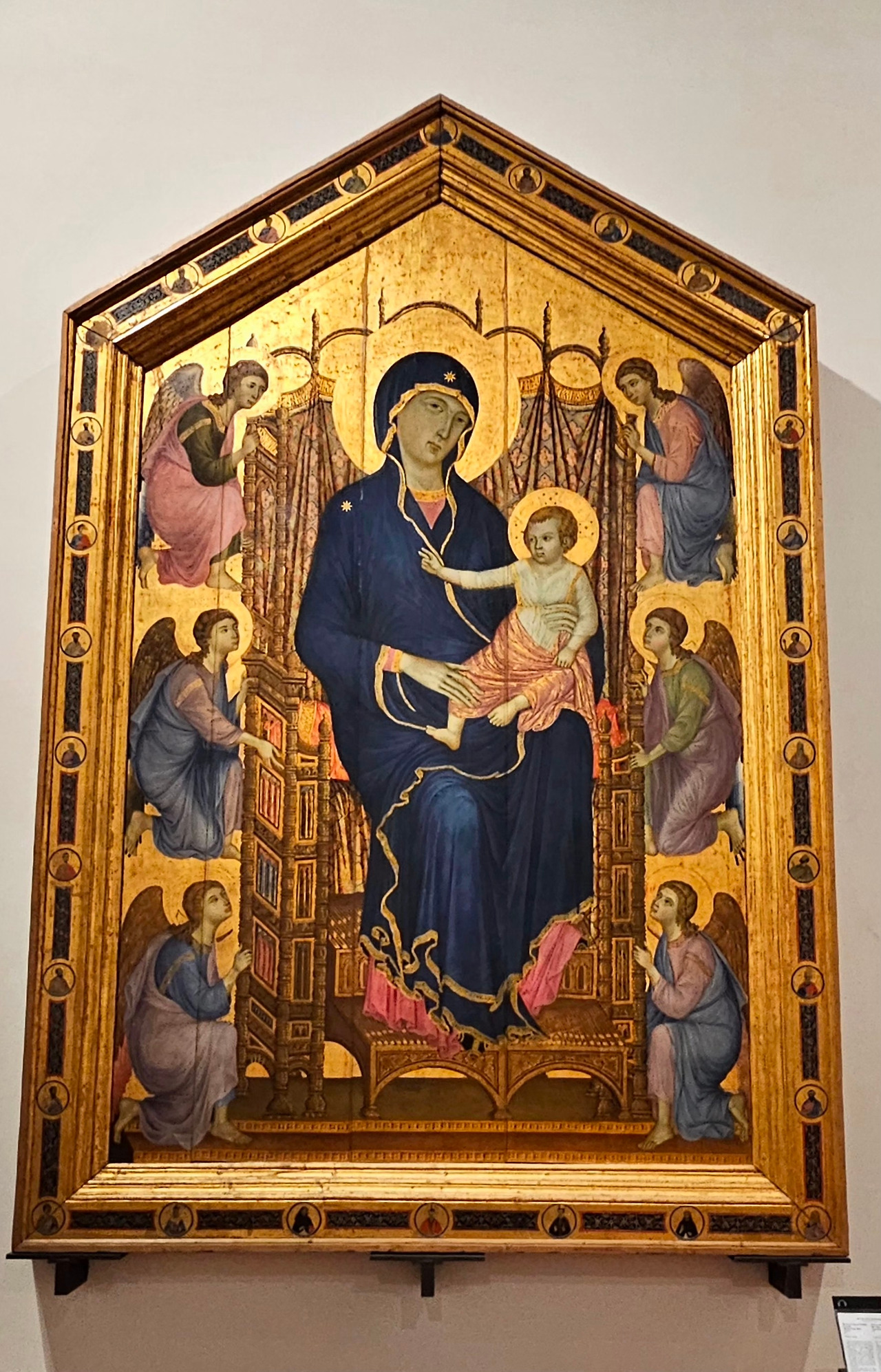 3층의 첫 번째 전시실에는 성모자상을 주제로 한 마에스타(Maesta) 작품들이 전시되어 있었다. 마에스타는 중세 말과 초기 르네상스를 잇는 중요한 예술 작품으로, 성모 마리아와 아기 예수를 중심으로 한 장엄한 성화를 의미한다. 특히 조토의 마에스타는 그가 프레스코와 패널 회화에서 혁신적인 스타일을 개발하며, 중세의 평면적이고 상징적인 양식을 넘어 사실적이고 인간적인 표현을 도입했음을 보여 준다. 중세에서 르네상스로 넘어가는 화풍의 변화를 미술에 대한 깊은 지식이 없는 나조차도 한눈에 알아차릴 수 있었다.