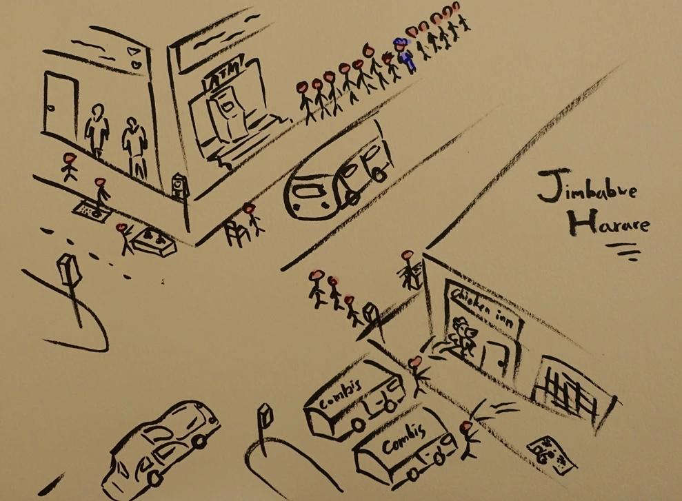 그리고 아주 새로운 풍경이 하나 더 있는데, 시내에 나가면 사람들이 ATM앞에 엄청나게 줄을 서고 있다는 것이다. 이게 가장 놀랍다. 처음엔 우리는 그들이 그곳에서 뭘 하는지 몰랐다. 돈을 뽑아야 했던 우리는 단지 그들이 두려웠다, 뭘 노리고 있는 걸까 해서. 알고보니 짐바브웨 사람들 60%는 해외의 누군가가 보내주는 돈으로 살아간단다(2013년 론리플레닛). 아마 적지 않은 사람들이 해외에서 돈을 벌어 가족들에게 부쳐주고 있겠다.