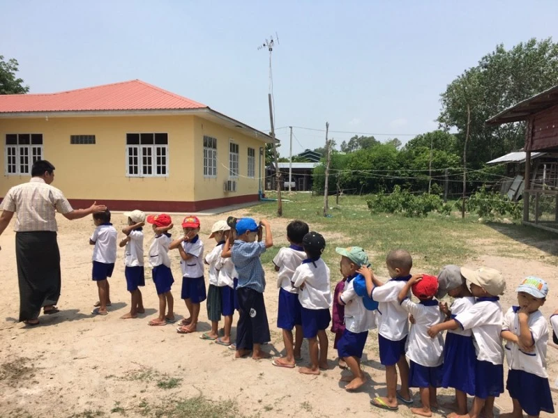 함께 와 준 미얀마 친구 가족을 따라서 스님 앞에 앉아 내 소개를 하고 기부 의식을 치렀다. 스님과 함께 기부물품에 손을 두고 스님께서 해 주시는 말씀을 같이 낭송한다. 그리고 스님이 불경을 낭송할 때 고개를 숙이고 작은 주전자에 있는 물을 쟁반에 조금씩 따른다. 아직 나는 이 의식의 의미를 모르지만 불교에서 물은 아주 신성하다는 것 정도로만 알고 있다. 방문자들을 위해 점심 상을 차려 주는데, 정말 푸짐했다. 십 대 남자아이들이 파란색 교복이나 스님복을 입고 밥상을 차리거나 음식 앞에서 부채질을 하는 등 기관에서 필요로 하는 일손을 제공하고 있었다.