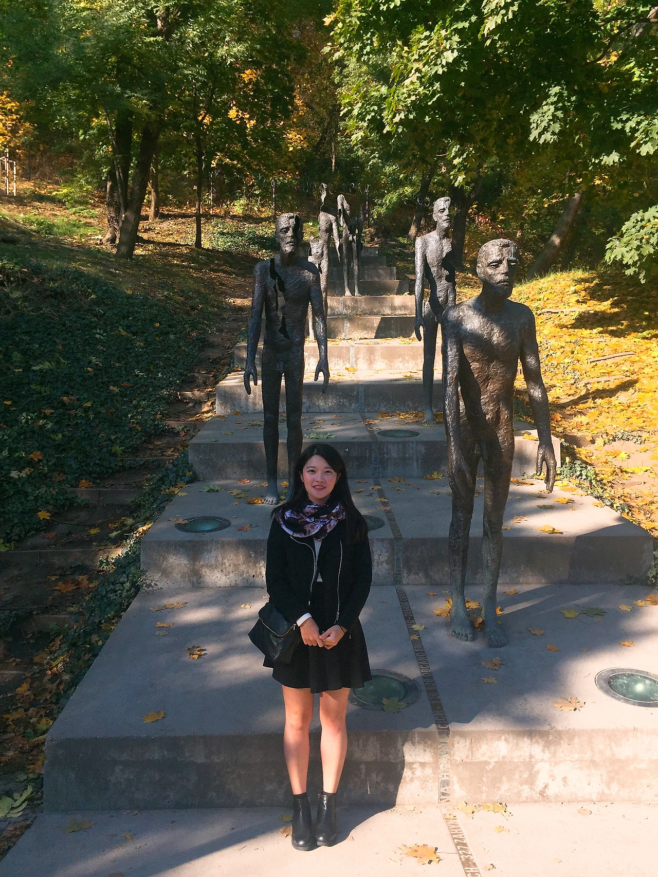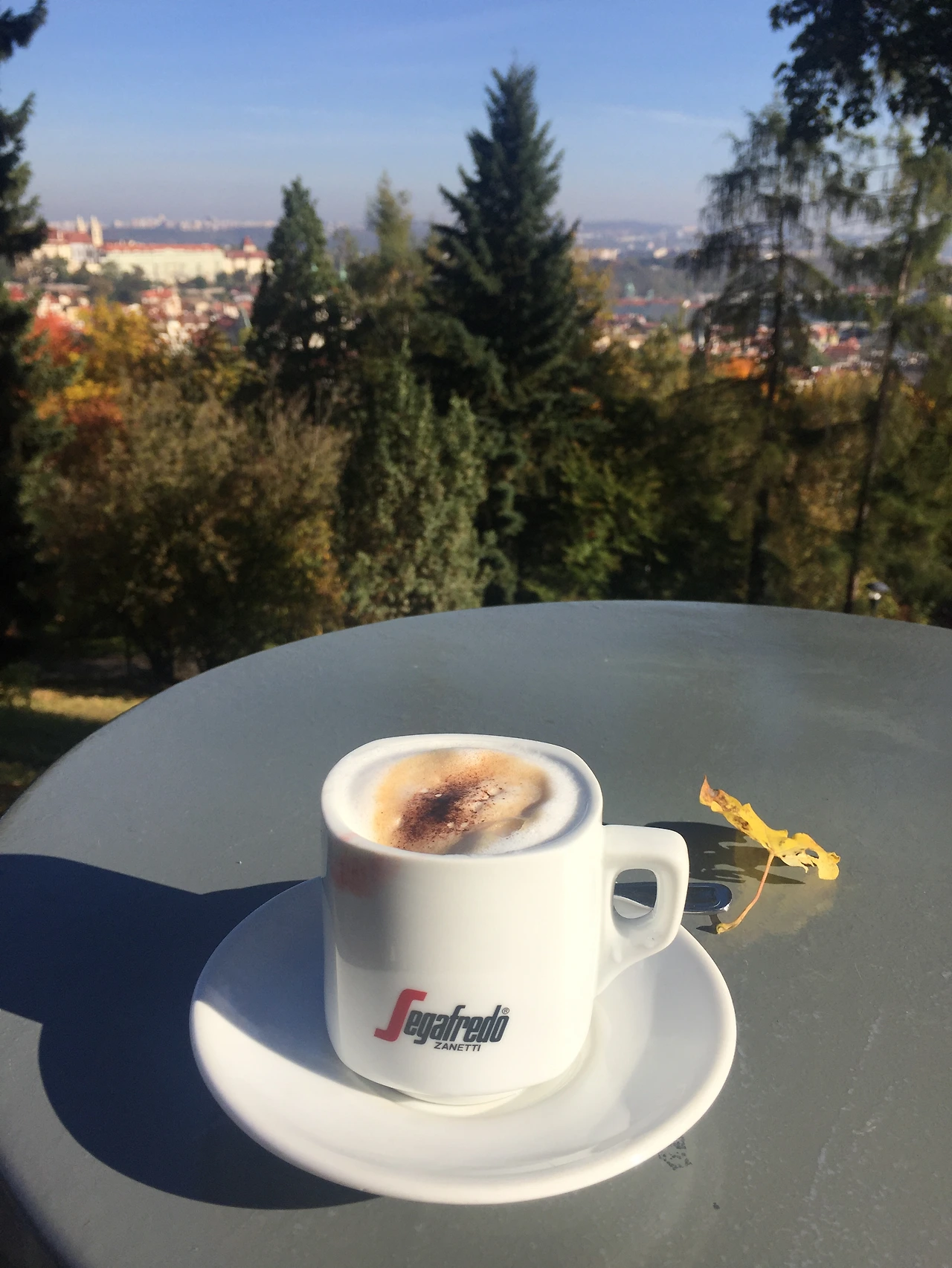 8년 전 예나 언니와 함께 왔던 생각이 나서 공산주의 석상에서 찍었던 사진을 언니에게 보냈다. 날씨가 좋아서 그런지 옮기는 발걸음 마다 그림 같다. 풍경을 보기 위해 몇 차례 발길을 멈췄다.(힘들어서 그런 건 아니고) 공원 중턱 즈음에서 노천 카페를 발견, 카푸치노 한 잔을 주문했다. 아름다운 풍경을 보면서 커피를 마시니 기분이 절로 좋아진다. 테이블 위에는 나무에서 떨어진 단풍이 놓여 있어 가을 분위기를 물씬 자아냈다. 옆 테이블의 아기는 방긋방긋 잘도 웃는다. 혼자 있어도 전혀 외롭지 않다. 기분 좋게 한참을 앉아 있다가 페트린 타워로 향했다.
