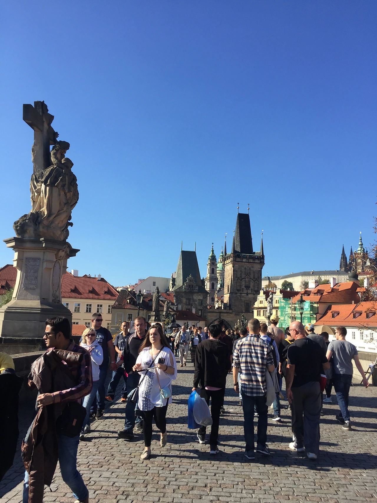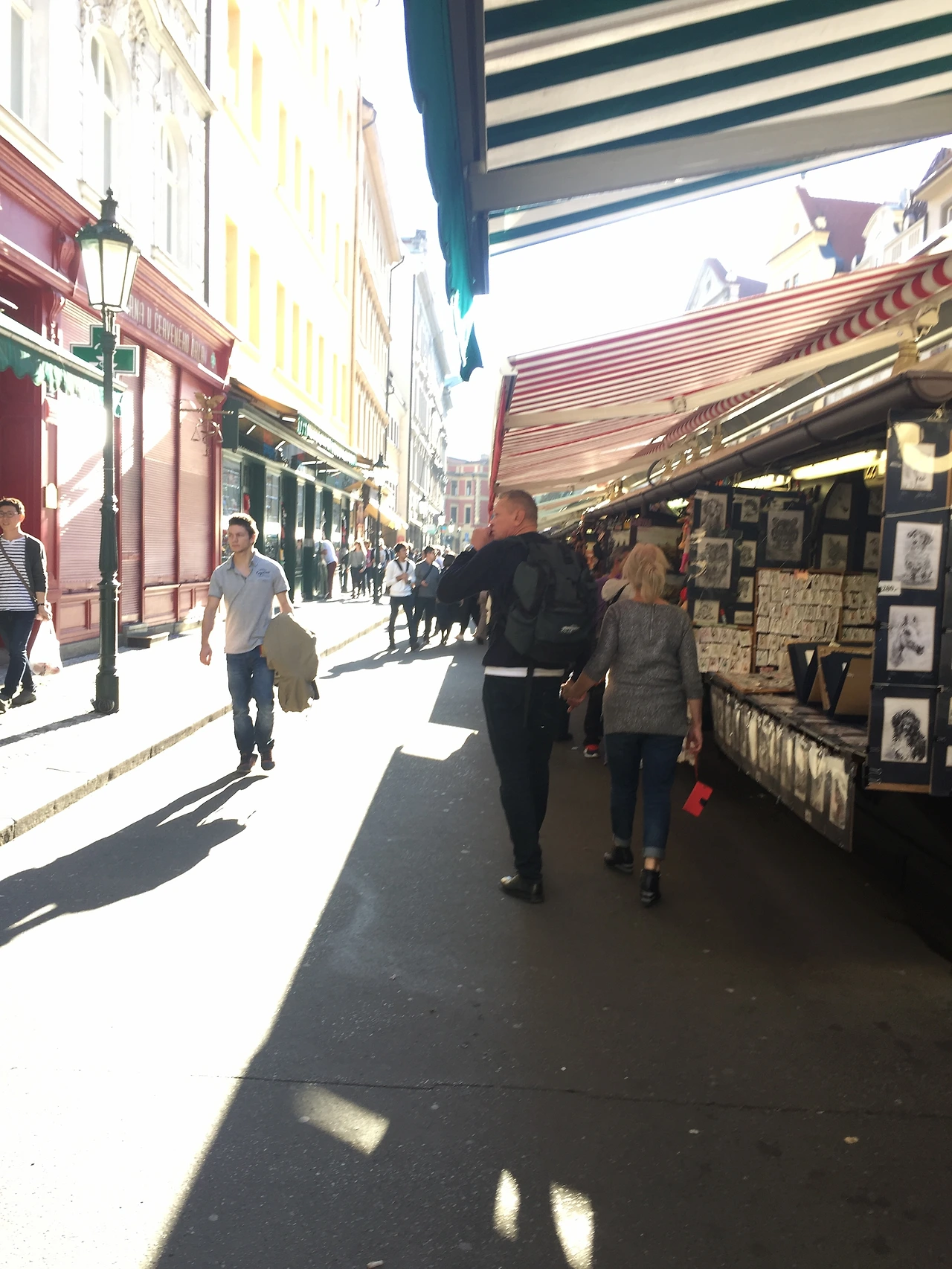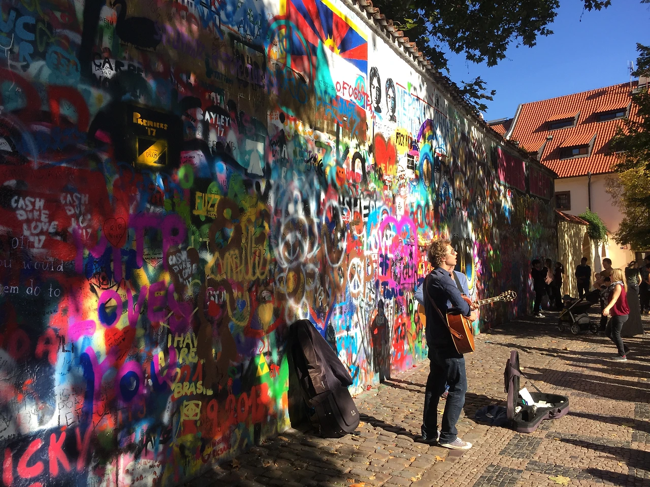 휴대폰과 보조배터리를 들고 망연자실하게 배회하다 밑져야 본전이지 마음으로 그냥 케이블을 꽂아놓고 있었다. 응? 왠지 충전이 되는 느낌이다. 오분 정도 꽂아두니 휴대폰이 켜졌다! 신난다. 레넌 벽에서 사진을 찍고(또 영상을 찍어주심) 까를교로 향했다. 한낯 기계 때문에 기분이 오락가락하다니. 예전에는 종이 지도만 들고도 잘 다녔는데! 아아 취소다. 내가 괜한 소리를.. 부디 잘 살아 있어줘. 나의 아이폰 6.