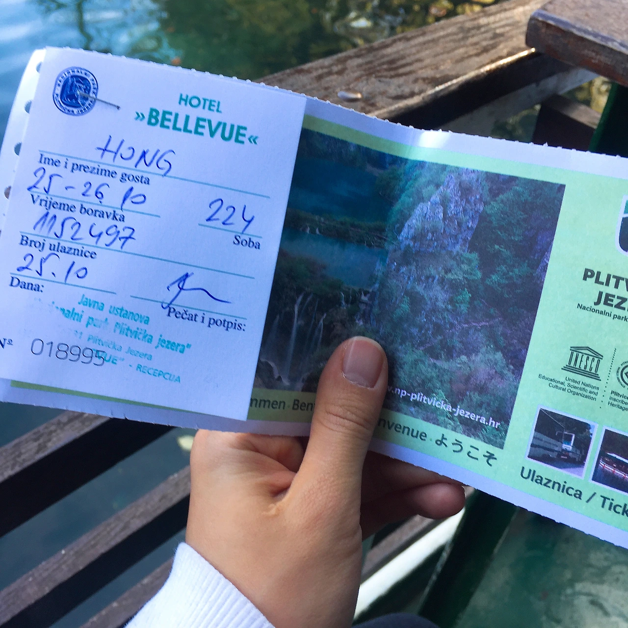 한참을 걷다 보니 페리 타는 곳에 도착했다. 이 곳에 있는 푸드코트가 플리트비체의 유일한 식당. 고기 페티와 베이컨이 들어 있는 플리트비체 버거를 주문했다. 경치 좋은 곳에 앉아서 먹을 준비를 하고 있는데 주변에서 우리말이 들린다.
