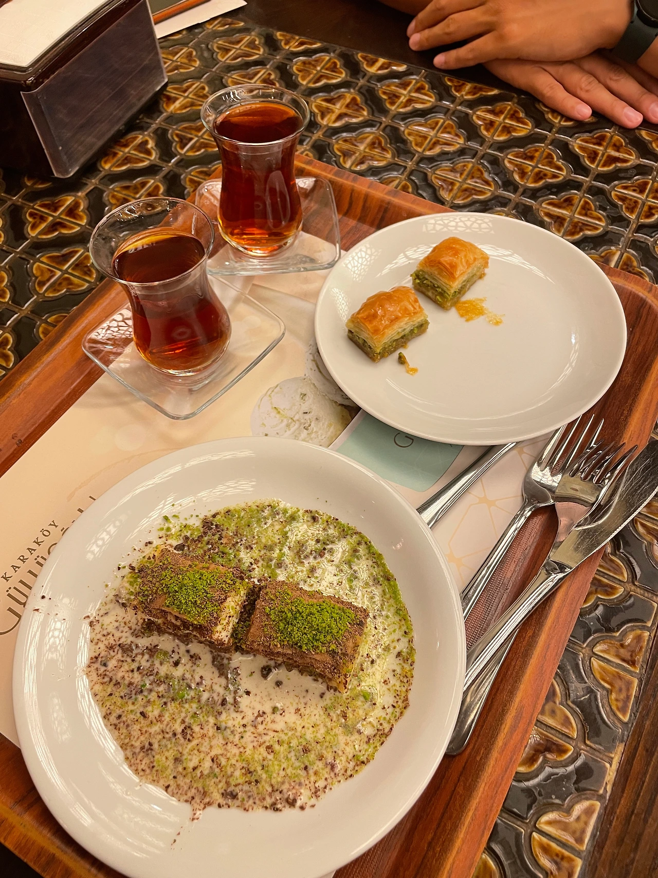 저녁은 함께 투어를 받은 분들의 추천으로 생선 케밥을 먹었다. 불에 구운 생선의 향이 일품이었다. 매끼 이렇게 맛있는 것들을 먹어도 되는지. 혀가 경기를 일으킬 지경이었다. 이어, 150년 전통의 바클라바 가게로 향했다. ‘카라쿄이 귤루올루’ 우리는 이스탄불에 오기 전 다큐멘터리를 통해 이곳의 장인정신에 대해 공부한 바 있었고, 잔뜩 기대하고 있었다. 가게에서 먹은 바클라바의 맛은 ‘크게 다를 것 없네?’였는데, 진가는 한국에 돌아와서 발휘되었다. 우리는 이곳에서 지인에게 선물할 바클라바들을 잔뜩 사 왔는데, 선물을 받은 지인들에 의하면 한 달을 냉장고에 두었지만 바삭함이 유지되었다고 한다. 역시 내공은 어딘가에서는 발휘된다.
