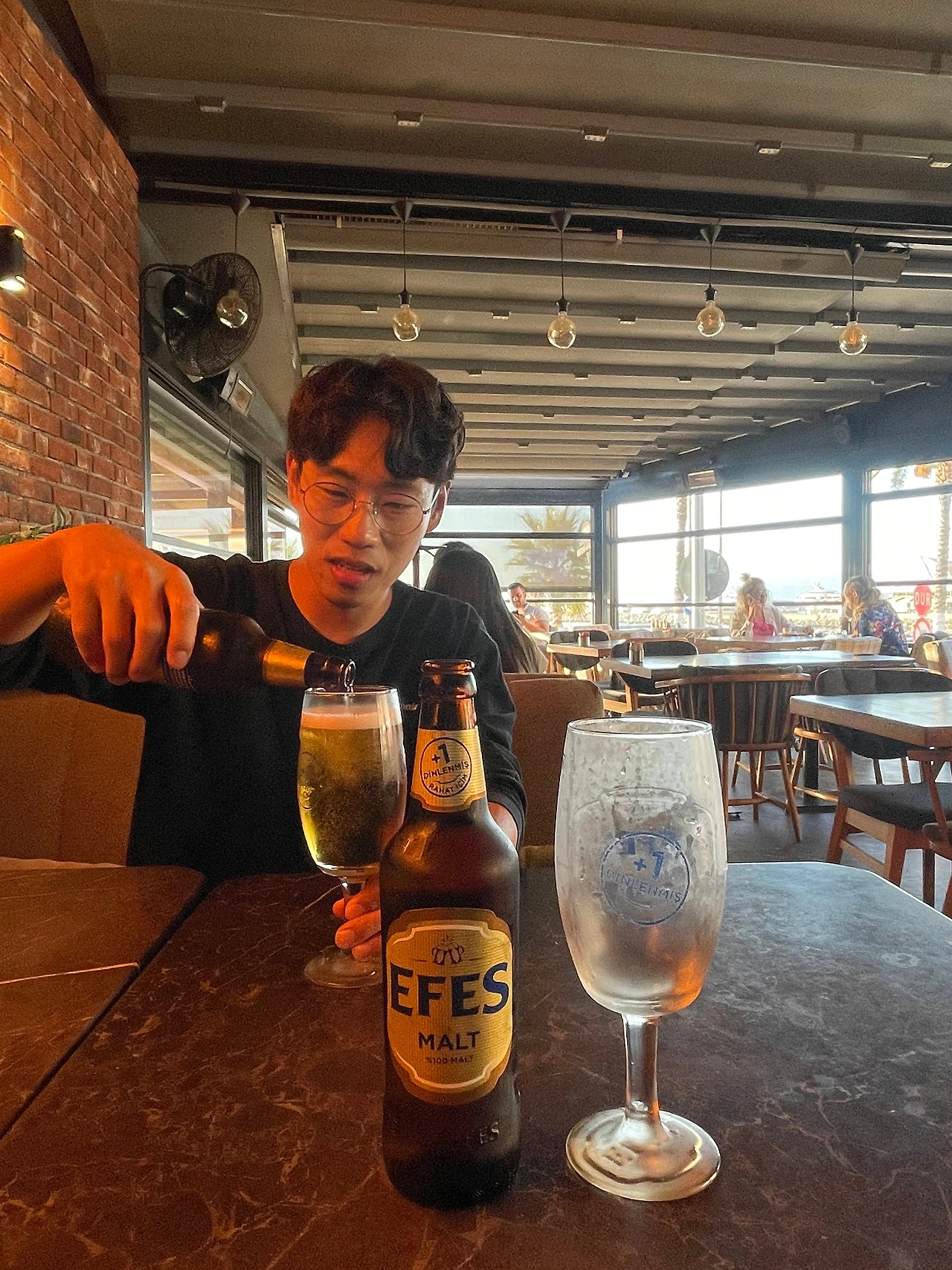 터미널로 들어가 국내선 탑승에 체크인하고 라운지에서 이스탄불행 비행기를 기다렸다. 사실 상정과 나는 잔잔한 숙취에 시달리는 중이었다. 셀축에서의 마지막 날 토요시장을 보고 난 뒤 할 일이 없던 우리는 충동적으로 버스 터미널에서 인근 휴양지인 쿠샤다시로 가는 돌무쉬를 타고 바닷가에 있는 주점에서 맥주와 시샤를 마음껏 즐겼다. 저렴한 물가를 자랑하는 튀르키예에서 맥주 값으로 우리 돈 10만 원 넘게 써버렸으니 얼마나 마셔댄 걸까. 얼큰해져 버린 우리는 숙소로 돌아오는 길에 달콤한 시럽으로 꽉꽉 찬 바클라바를 각자 4개씩 먹으면서 튀르키예식 해장을 시도하고 잠을 청했다. 그 덕분에 다음날 자리를 박차고 일어나는 데는 큰 무리가 없었지만, 음주의 여파는 남아 두개골 속을 잔잔히 휘젓고 다니는 중이었다. 이즈미르 공항 라운지에서 뜨끈한 토마토 수프를 발견한 상정의 얼굴에는 미소가 피어올랐고, 나와 상정은 토마토 수프를 한 대접씩 마시면서 남아 있는 두통을 잠재웠다. 그리고 우리 역시 비행기에 타자마자 곯아떨어졌다.