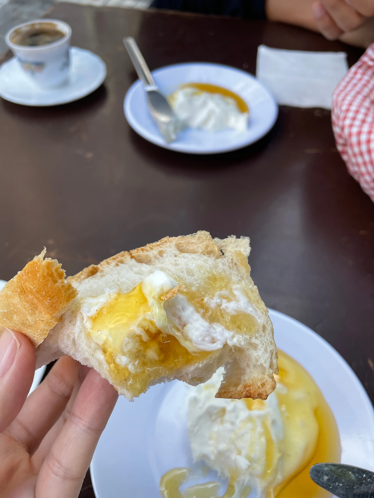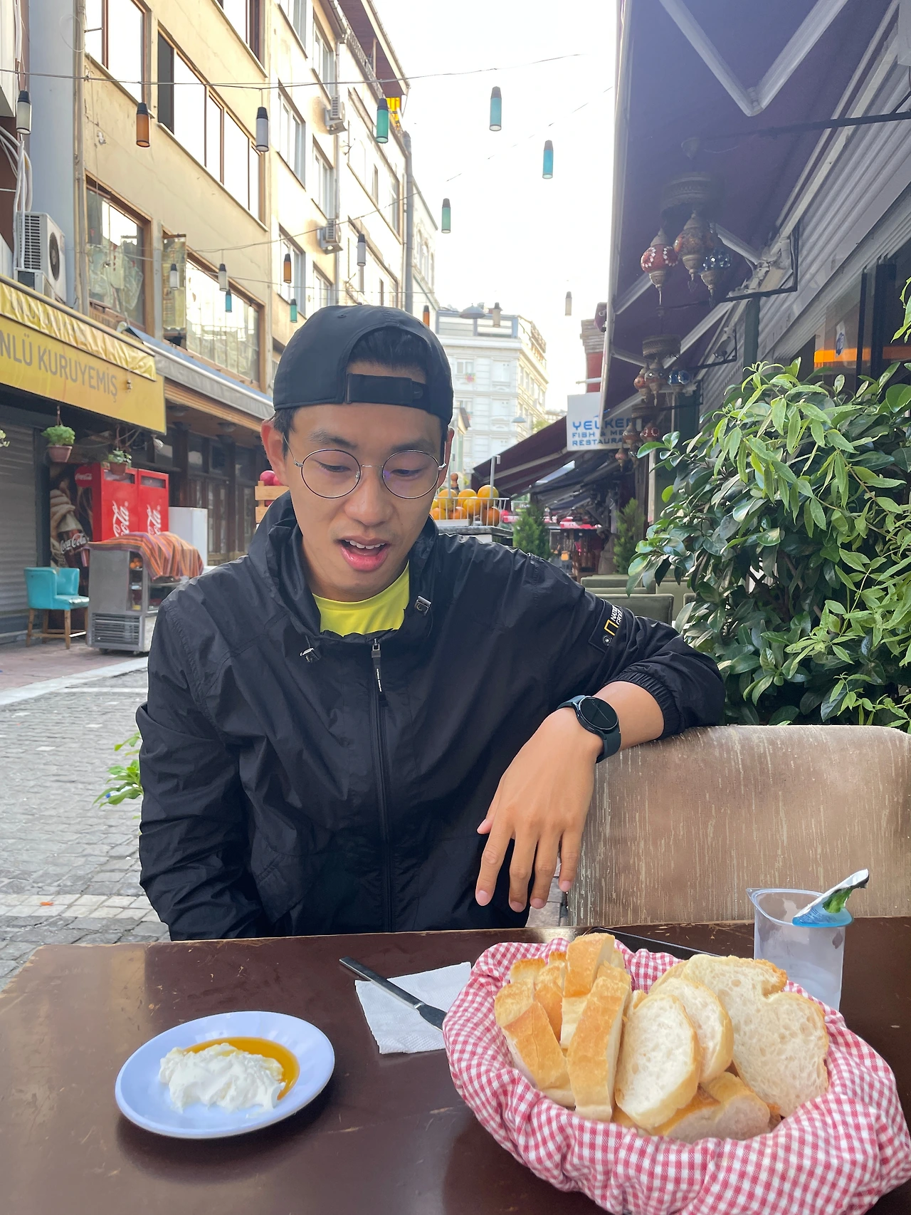 탁심 광장을 지나 갈라타 다리를 건너 그랜드 바자르를 가로질렀다. 영업 준비를 하고 있던 그랜드 바자르의 사장님들은 쫄쫄이 바지를 입고 가쁜 숨을 몰아 쉬며 오르막길을 내달리는 우리를 보자 엄지 손가락을 척 내밀며 응원을 건네주었다. 지도를 확인하며 정신없이 약 30분 정도를 달려 목적지인 카이막 식당에 도착했다. 식당 앞에는 백종원의 싸인과 촬영 현장 사진이 붙어져 있었다. 우리는 카이막 두 개와 튀르키예 커피를 시켰다. 땀 흘리며 달려온 탓인지 갓 구운 바게트 빵에 찍어먹는 카이막은 정말 꿀맛이었다. 순식간에 접시를 비우고 다시 한번 차이 두 잔과 카이막 두 개를 시켰다. 두 번째 접시 역시 핵꿀맛! 물소 젖으로 만든 카이막은 부드럽고 신선했고 꿀의 달콤함은 러닝의 피곤함을 잊게 했다. 배를 두둑이 채운 우리는 바닷가 쪽으로 방향을 틀어 다시 숙소가 있는 탁심 광장으로 향했다. 바닷가 옆 평평하고 완만한 길을 걸으며 ‘아, 이쪽으로 달려올걸...’이라는 후회를 잠시 했지만 오르막길 덕분에 카이막을 더 맛있게 즐길 수 있었던 것 같다는 생각을 하며 내뱉은 후회를 바로 거두었다.