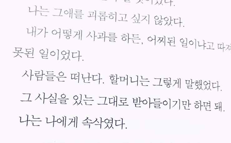 오래간만에 한 장 한 장 아껴서 읽은 책이었어요. 마지막 장을 읽었을 때는 마침 1,000여 일 동안 물속에 가라앉아 있던 세월호가 들어 올려지던 날이었어요. 마음이 아파서 잠을 잘 수 없었습니다. 그때의 기억이 희미해진 제 자신이 미워서 견딜 수가 없었어요. 제가 살고 있는 고장에서 벌어진 일임에도 불구하고.