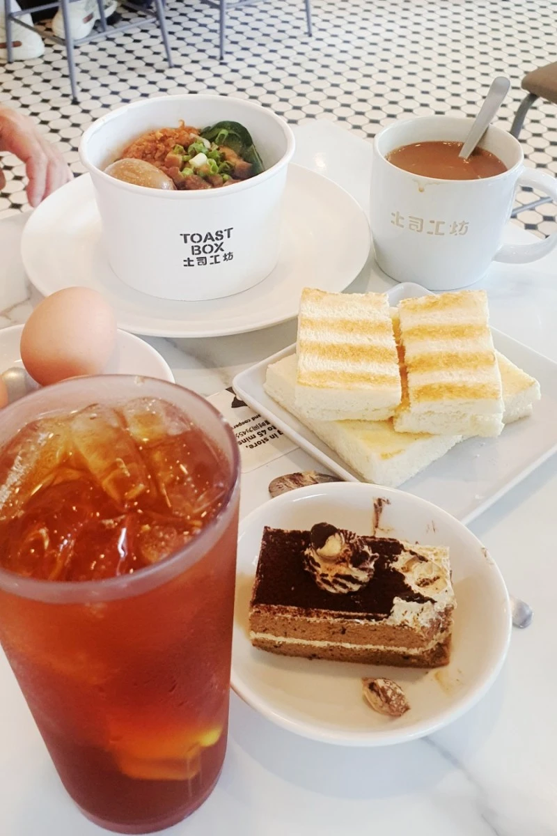 바삭한 토스트에 버터와 카야쨈을 바른 토스트와 수란, 따뜻한 차나 싱가포르식 커피를 곁들이는 데, 카야토스트를 파는 로컬식당도 많지만, 가장 유명한 두 곳을 꼽자면 <토스트박스>와 <야쿤카야토스트>다.