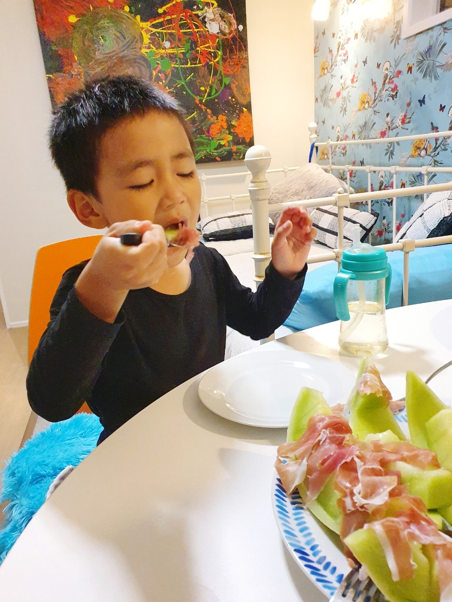 57개월 어린이 중에 프로슈토 먹는 아이가 과연 몇이나 될까.. 세계여행을 하며, 아이에게 다양한 식재료를 경험해주려고 한다. 여전히 엄마표 꿀밥과 미역국을 가장 좋아하긴 하지만.. 아티초크, 서양배, 트러플, 엔초비, 루꼴라 등 한국이라면 질겁하며 거절했을 생소한 식재료도 일단 한 번은 시도해 보는 멋진 어린이 정우. ^^