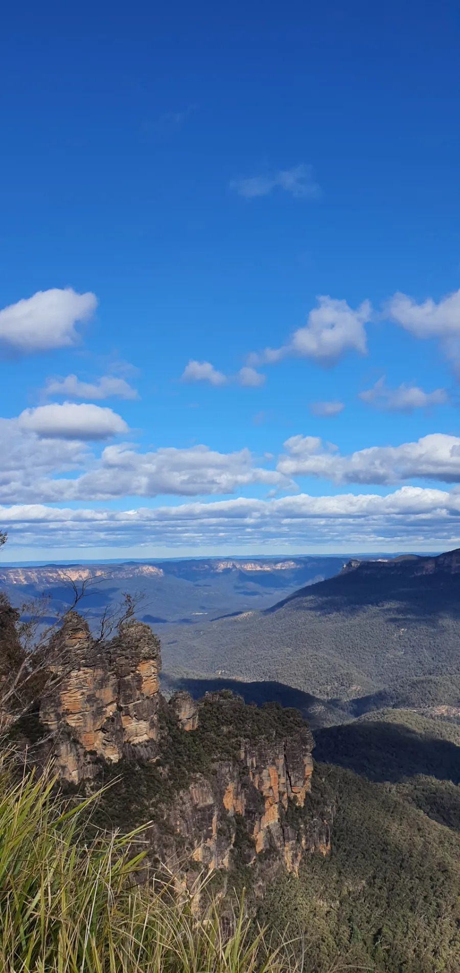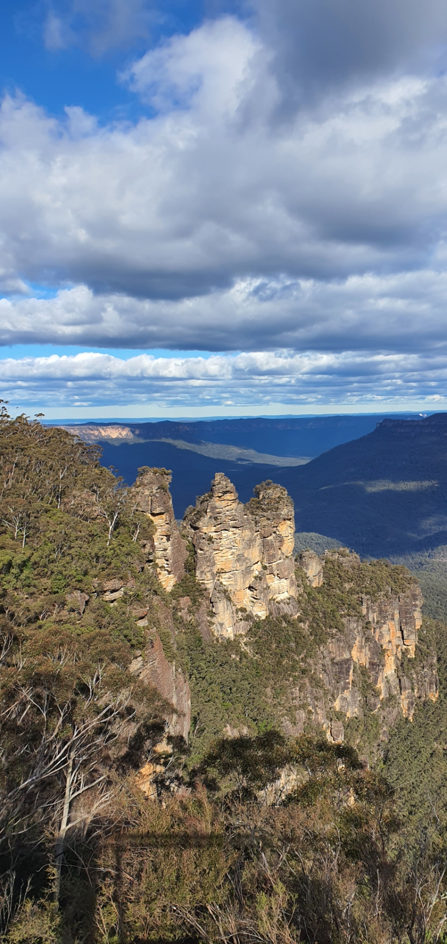 초식 공룡이 먹었다는 유칼립투스 나무로 뒤덮인 산이 지평선 너머에 펼쳐져 빼곡하게 온 천지를 뒤덮고 있다. 저 멀리 지평선까지 온통 숲이다. 바다 너머로 보이는 수평선까지 바다가 펼쳐진 것처럼, 온 사방이 나무로 가득 찼다. 지난 호주 산불에서도 죽지 않고 살아남은 끈질긴 생명력으로 멋진 산의 모습을 되찾았다.