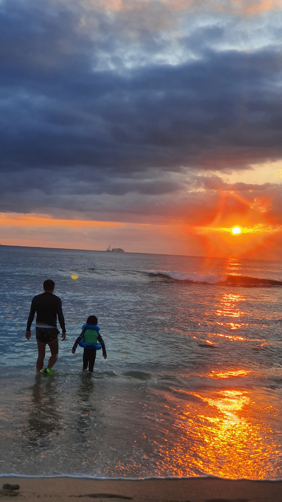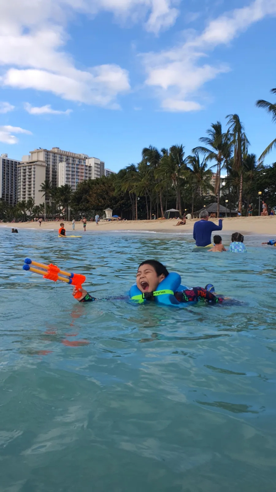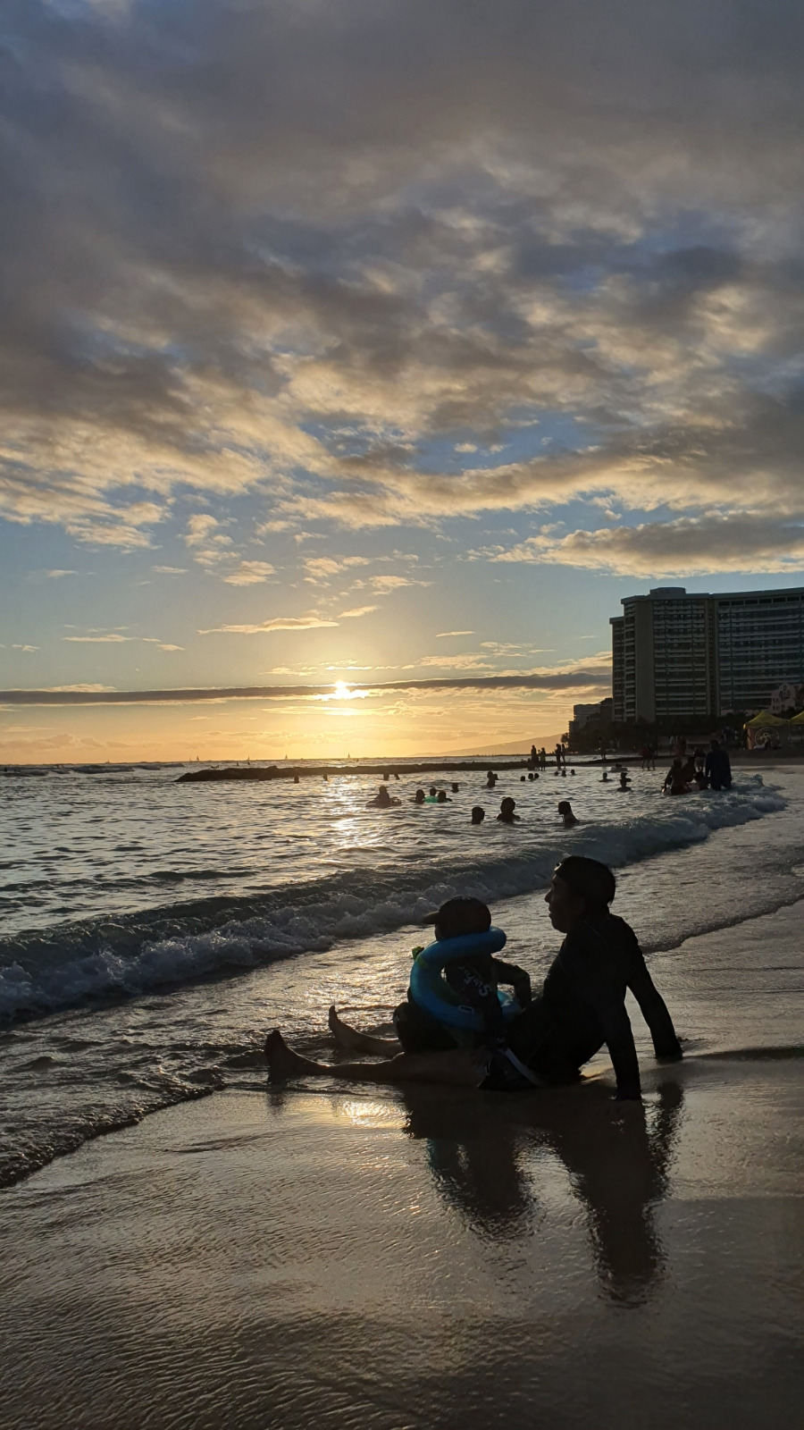 이튿날도 와이키키 해변을 찾는다. 첫날과 다른 포인트에 자리 잡았다. 어제 핸드폰을 가져갔더니, 스페인 산세바스티안의 도난 경험이 떠올라 우리 자리를 몇 번이나 확인했는지. 걱정 없이 편안한 게 가장 좋다. 와이키키 해변 200미터 너머에서 서핑하는 사람, 튜브에 의지해 노는 사람을 보면 미친 거 아냐? 하는 생각이 든다. 지금은 적응됐지만, 깊은 바다와 앞바다의 수심이 비슷하다. 한국은 조금만 들어가도 발이 닿지 않는 깊은 심연으로 들어가게 된다. 그 경험을 수십 년 해왔기에 아무리 수심이 비슷해도 모래사장이 희미해지는 곳까지 내 몸을 담그는 게 두렵고 무모하게 느껴진다. 내게도 인간의 모험을 즐기는 DNA가 있는지 몸이 점점 저 멀리 수평선을 향해 나아간다. 깊이 들어갈수록 아드레날린이 나오는 듯하다.
