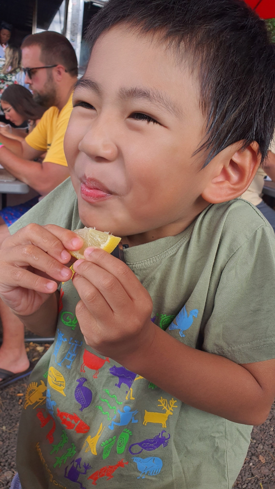 미국 병원은 우리 모두 처음이다. 출입문에 '열이 있으면 차로 돌아가서 먼저 전화를 하라'는 팻말이 붙어있다. 들어가기도 전에 문전박대당하는 느낌에 당황스러웠다. 나 혼자 조심스럽게 들어가 카운터를 어슬렁거렸다. 직원 한 명과 칸막이 건너로 대화를 시작했다. 그간의 상황을 설명했다. 전화번호를 남기고 밖으로 나왔다. 한여름 정오의 하와이는 푹푹 찐다. 그늘이 있는 야외 테이블에 자리 잡았다. 정우는 노란색 당근잠옷을 그대로 입고 나왔다. 온 얼굴에 모세혈관이 터져 얼룩덜룩한 몰골에 잠옷을 외출복으로 입고, 안 깎은 지 두 달이 넘은 더벅머리에 시커멓게 탄 얼굴은 훌륭한 부모 밑에 자라는 아이로 보이지 않았다.