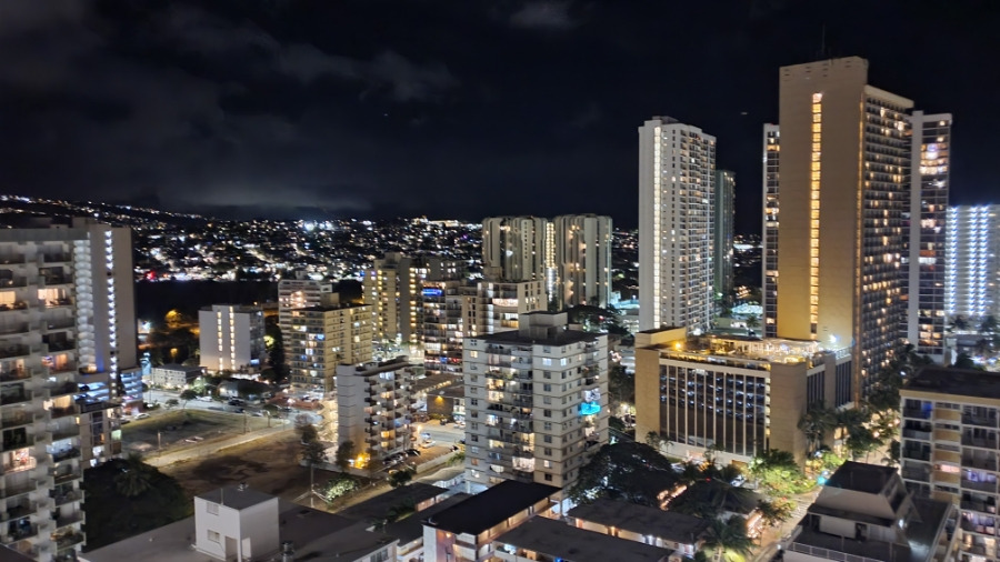 숙소에서 바라본 와이키키의 야경.