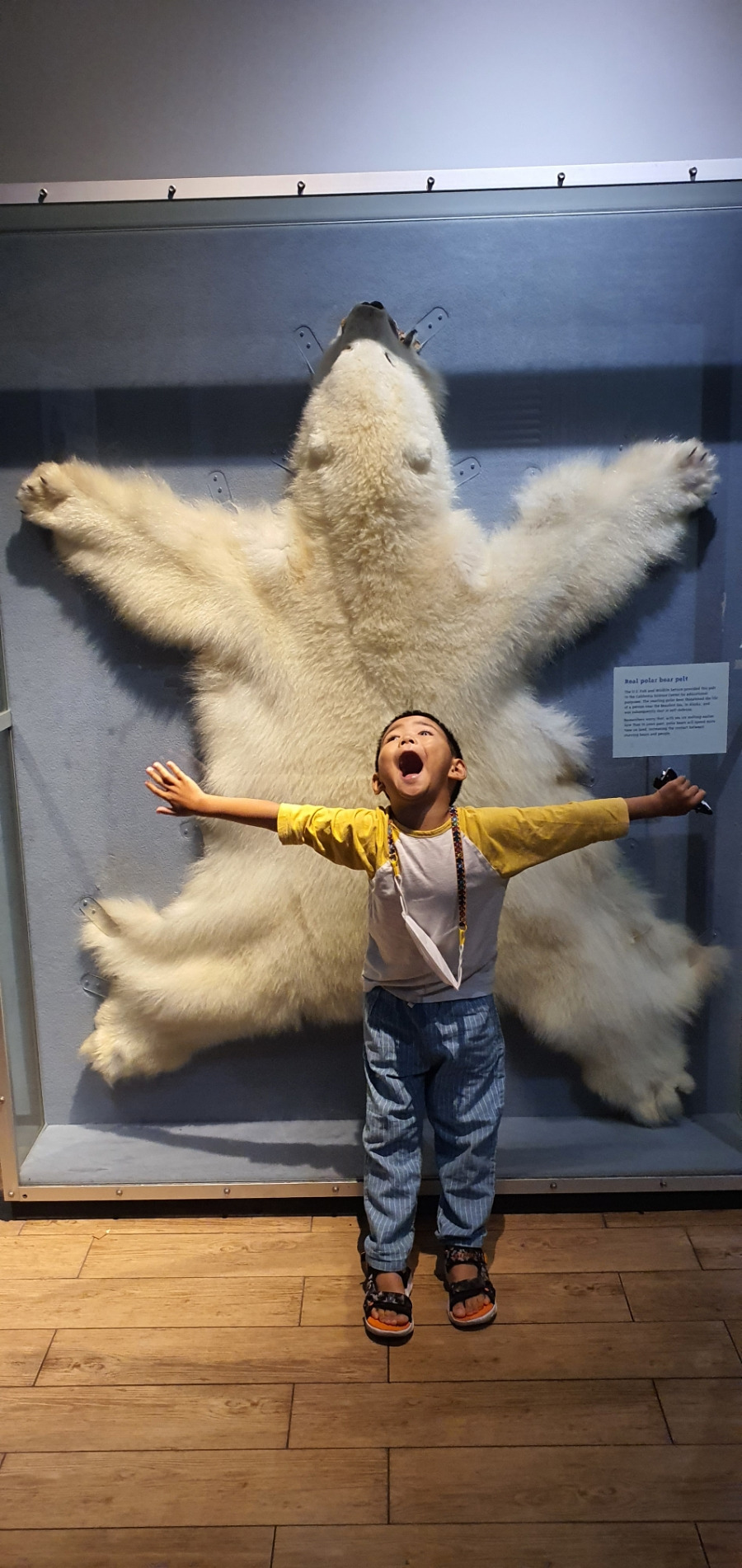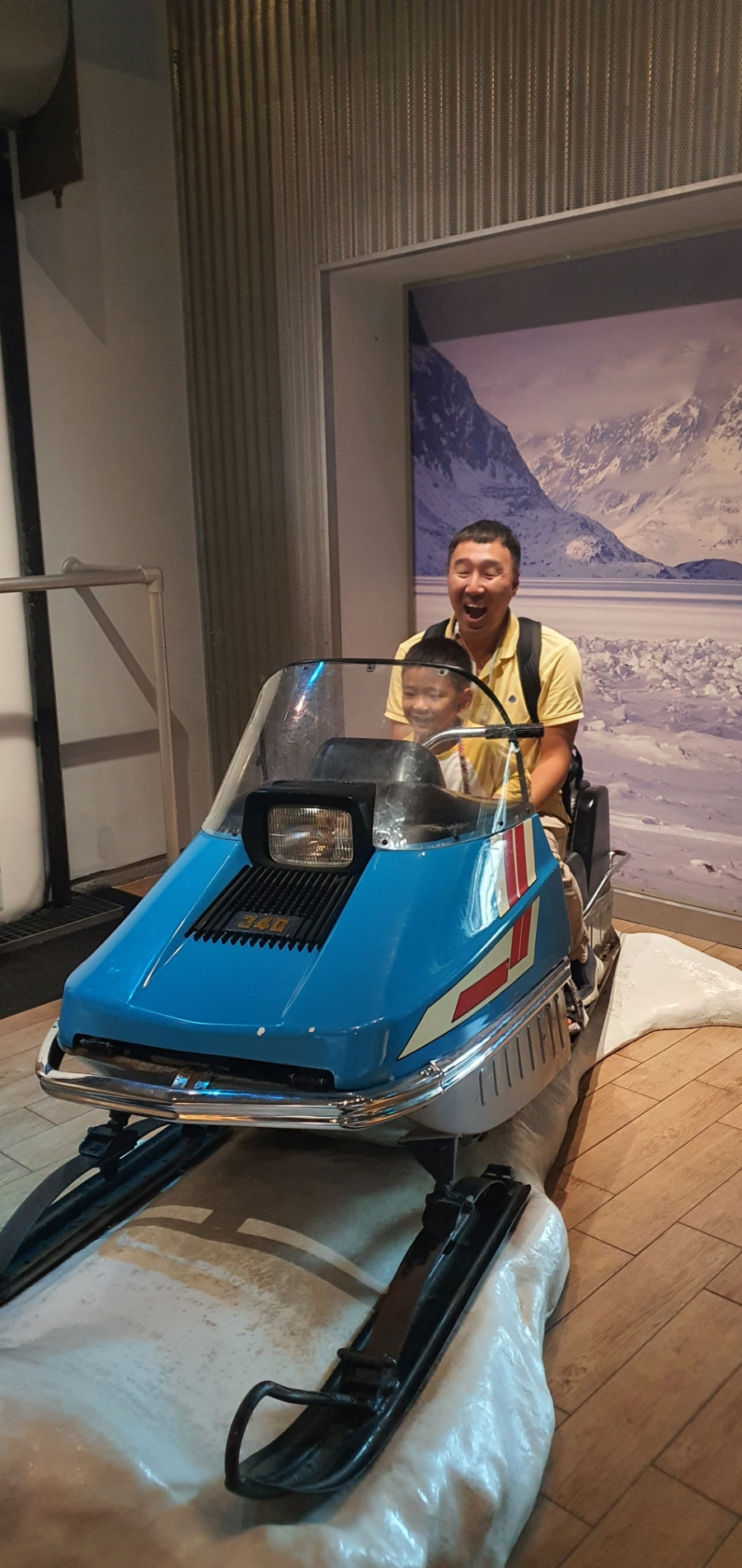 좌측은 극지방 탐사대가 사용하는 이동수단 전동썰매(?) 오른쪽은 북극곰 폴라베어의 가죽이다.