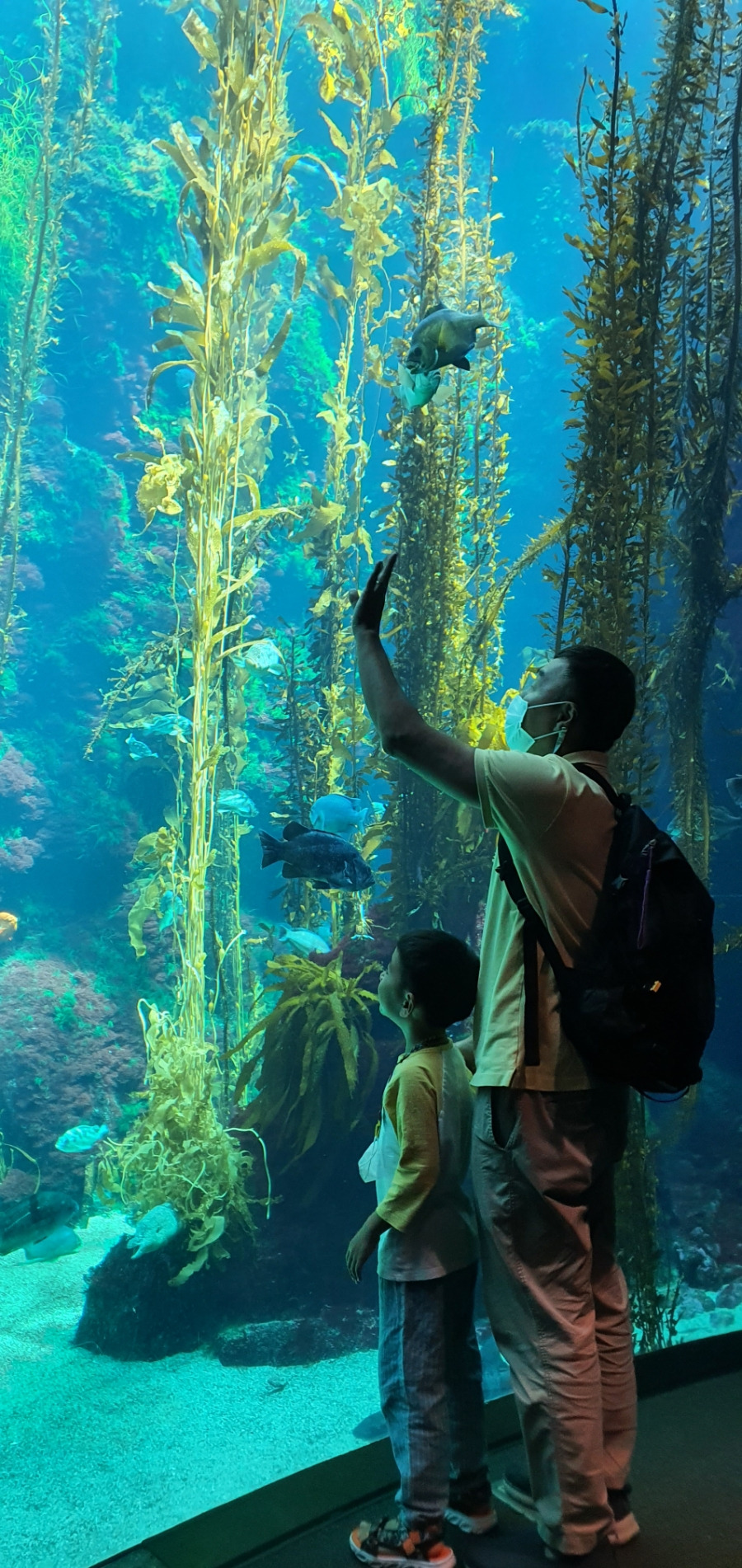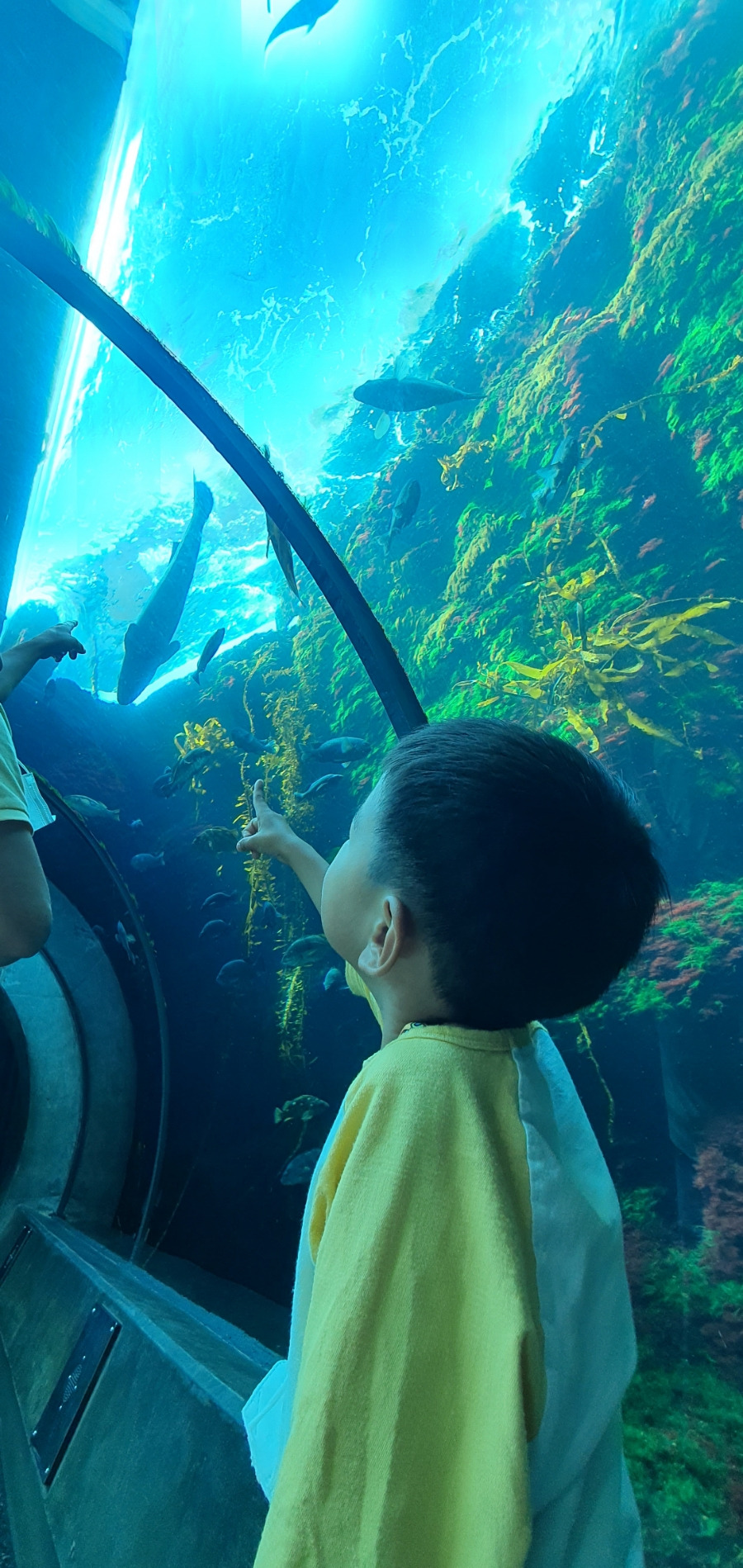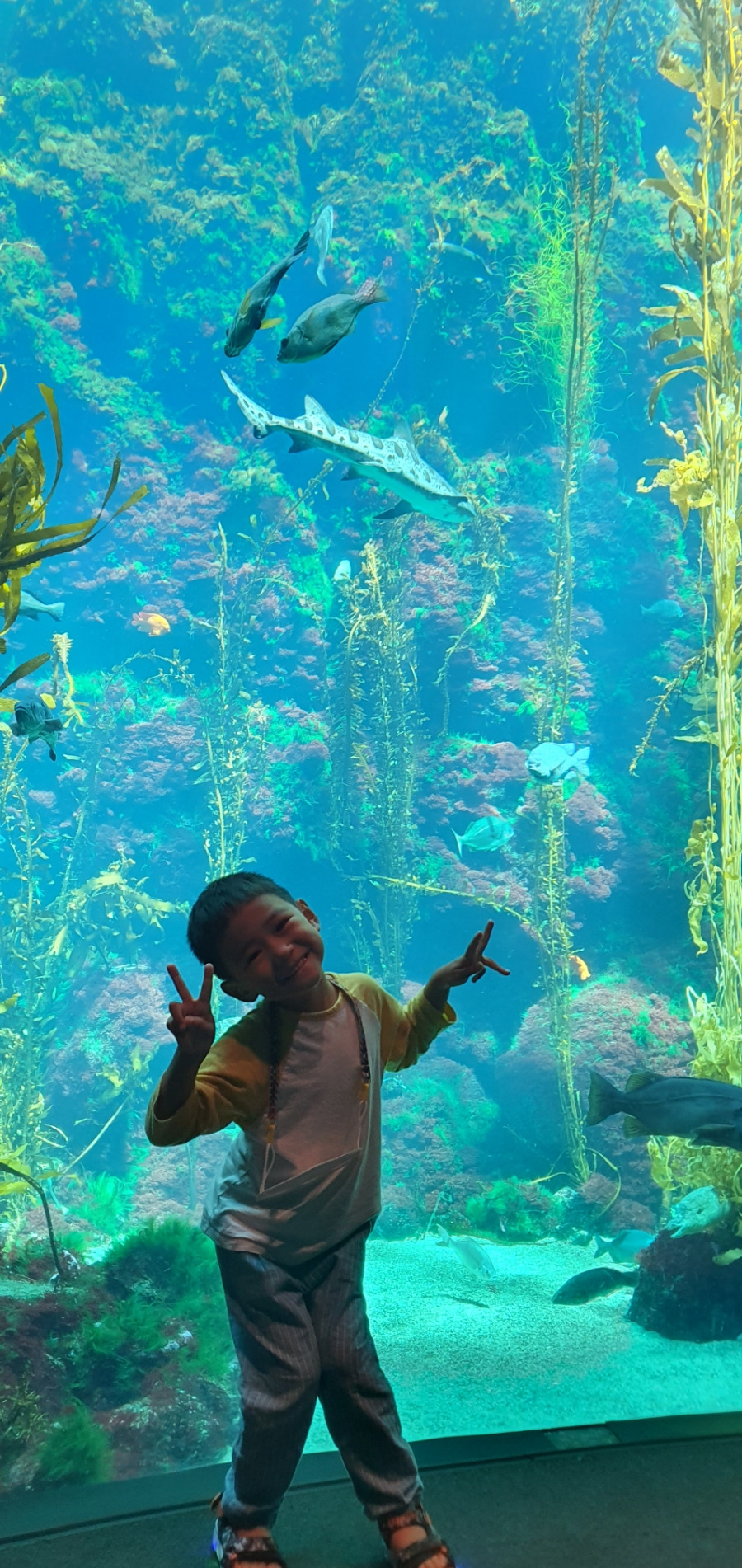 해양생물을 전시해놓은 대형수조에 여러 종류의 상어와 바다거북, 가오리 등 다양한 어종을 만날 수 있다.