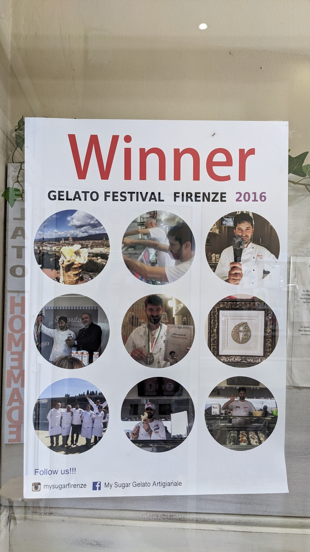 <my sugar>는 2016년 피렌체 젤라토 페스티벌에서 우승했던 매장으로, 피렌체 대성당에서는 족히 20분은 걸어야 하며, 좁은 골목에 테이블 하나 없이, 작은 스툴만 몇 개 남짓한 작은 가게다.