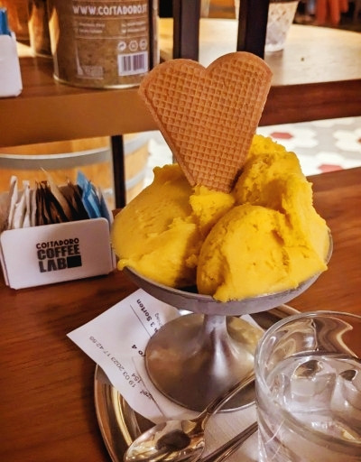 과일 아이스크림을 좋아하지 않는 분이라면, 바닐라 맛 젤라토 두 스쿱과 에스프레소를 얹은 아포가토를 추천한다. 진한 바닐라와 쌉쌀한 에스프레소의 풍미가 고급스럽게 어우러진다.