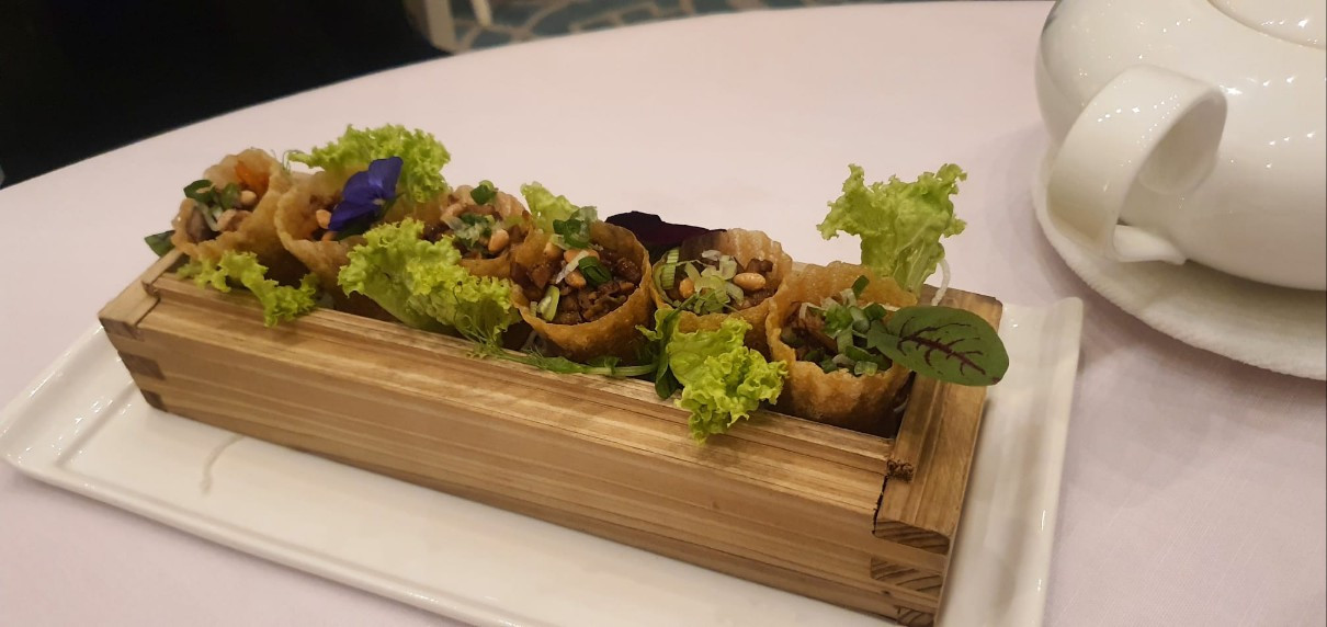 드디어 차례대로 음식이 제공된다. 일본의 코바치가 연상되는 작은 접시에 예쁘게 플레이팅 된 요리들이 나온다. 하나같이 예쁘고 훌륭하다. 기대했던 랍스터 누들은 탱글한 랍스터의 육질을 그대로 살려 면과 함께 내는 차가운 요리인데, 유명한 만큼 훌륭했다. 베이징덕과 함께 제공된 오렌지 필이 맛있다며 남편은 두어 번 리필을 요청했다. 아이도 남편도 맛있게 즐겼고, 이제 55개월 아들 녀석과 파인다이닝에서도 식사가 가능하다는 생각에 뿌듯했던 밤이다.