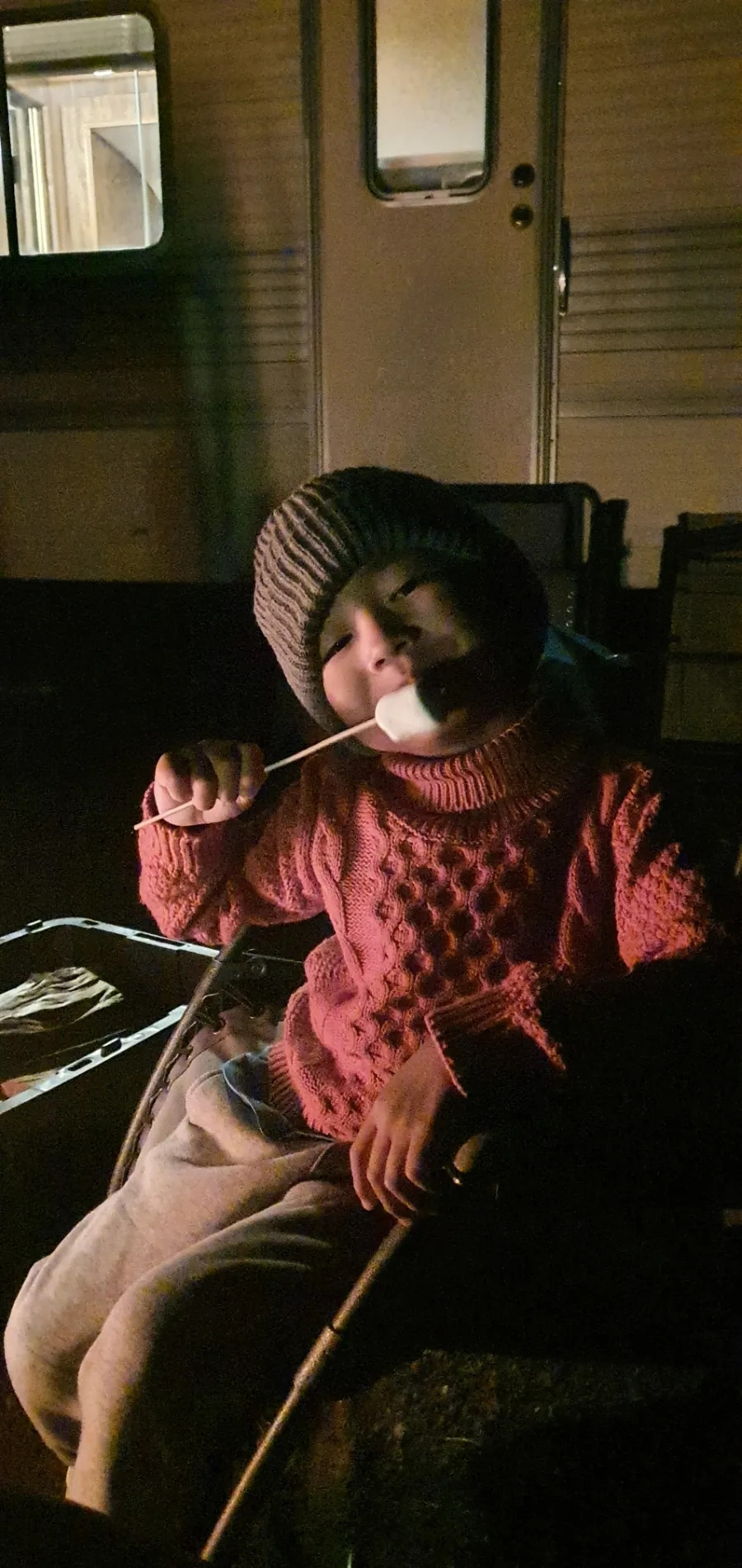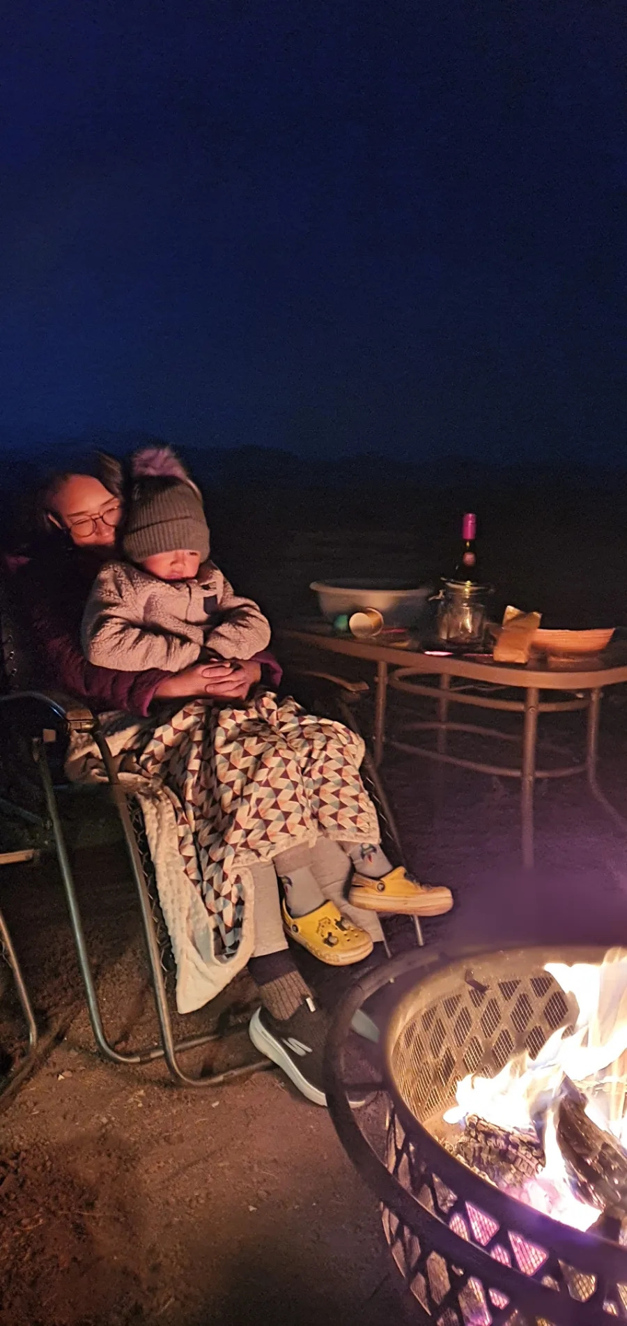 대망의 불멍과 별 보기를 위한 세팅에 들어간다. 캠핑 경험이 전무한 남편과 아이가 협심해서 테이블과 장작불을 완성했다. 잔뜩 들뜬 아이가 적극적으로 아빠를 돕는다.