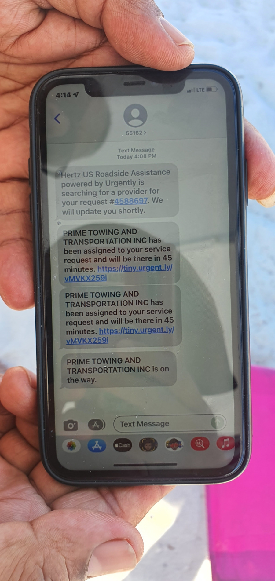 '리처드'라는 중남미 트리니타드 토바고 출신의 남자다. 그가 렌터카 회사 Hertz에 연락을 취한다. 상담사에게 상황설명을 하고 남편에게 핸드폰을 넘긴다. 상담센터 여직원에게 견인 차량 요청과 잃어버린 차 키 비용 지불 등을 마무리한다.
