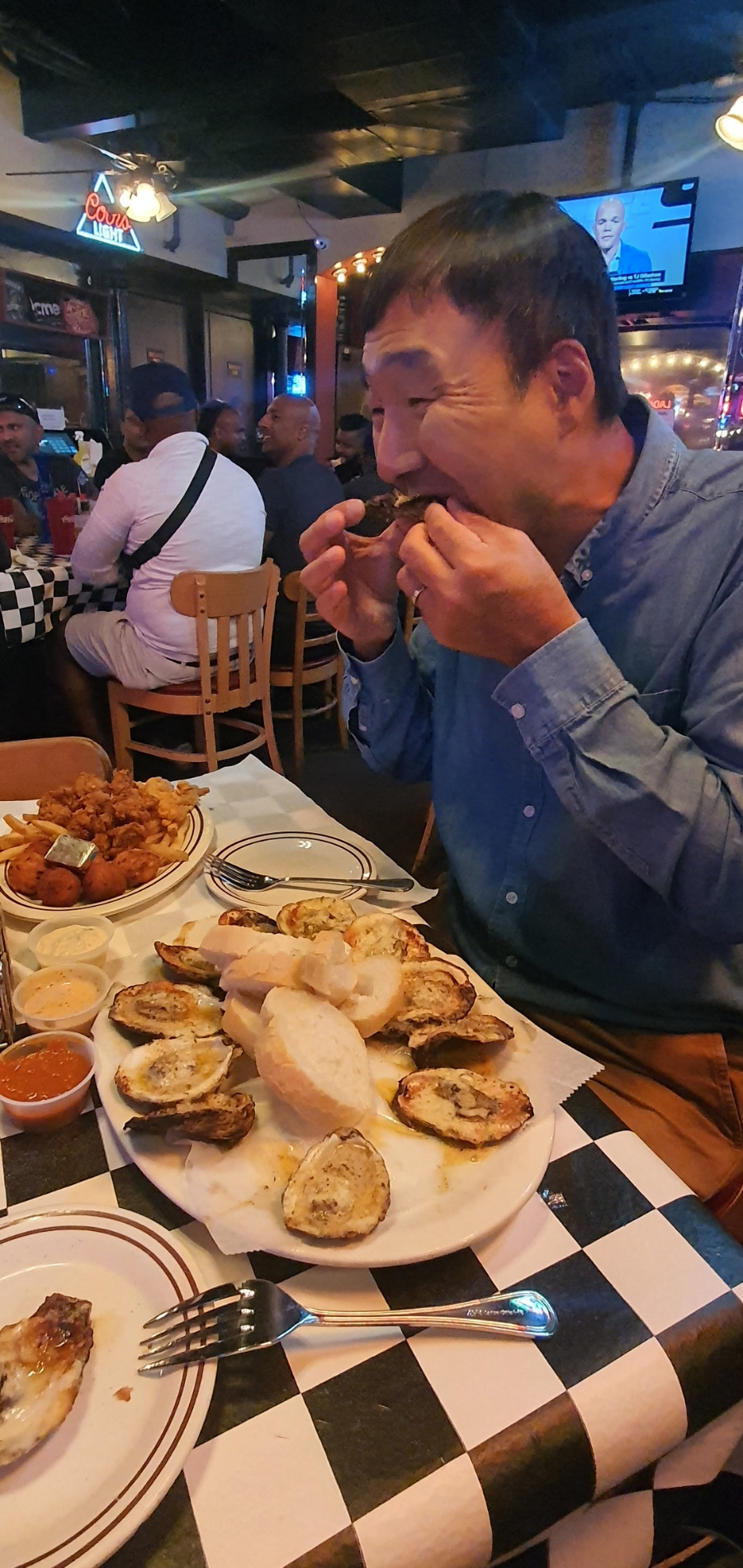 무거운 마음과 달리, 베녜도넛은 환상적이었다. 정우와 나는 정신을 못 차리고 도넛 2개를 앉은자리에서 흡입했다. 마음 같아선 10개도 먹을 수 있지만, 칼로리를 생각해서 조절했다. 책으로만 보던 미시시피 강변을 산책하고, <ACME>라는 유명 레스토랑에서 그토록 그리던 숯불 굴구이도 먹었다. 어느덧 오후 3시다.