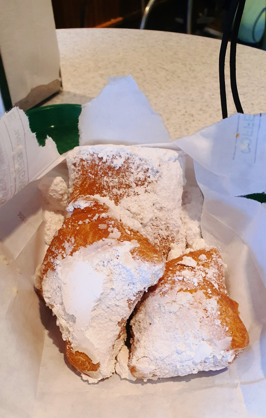 <Cafe de Monde>의 환상적인 베녜도넛, 카페라떼와 함께하면 황홀한 맛이다.