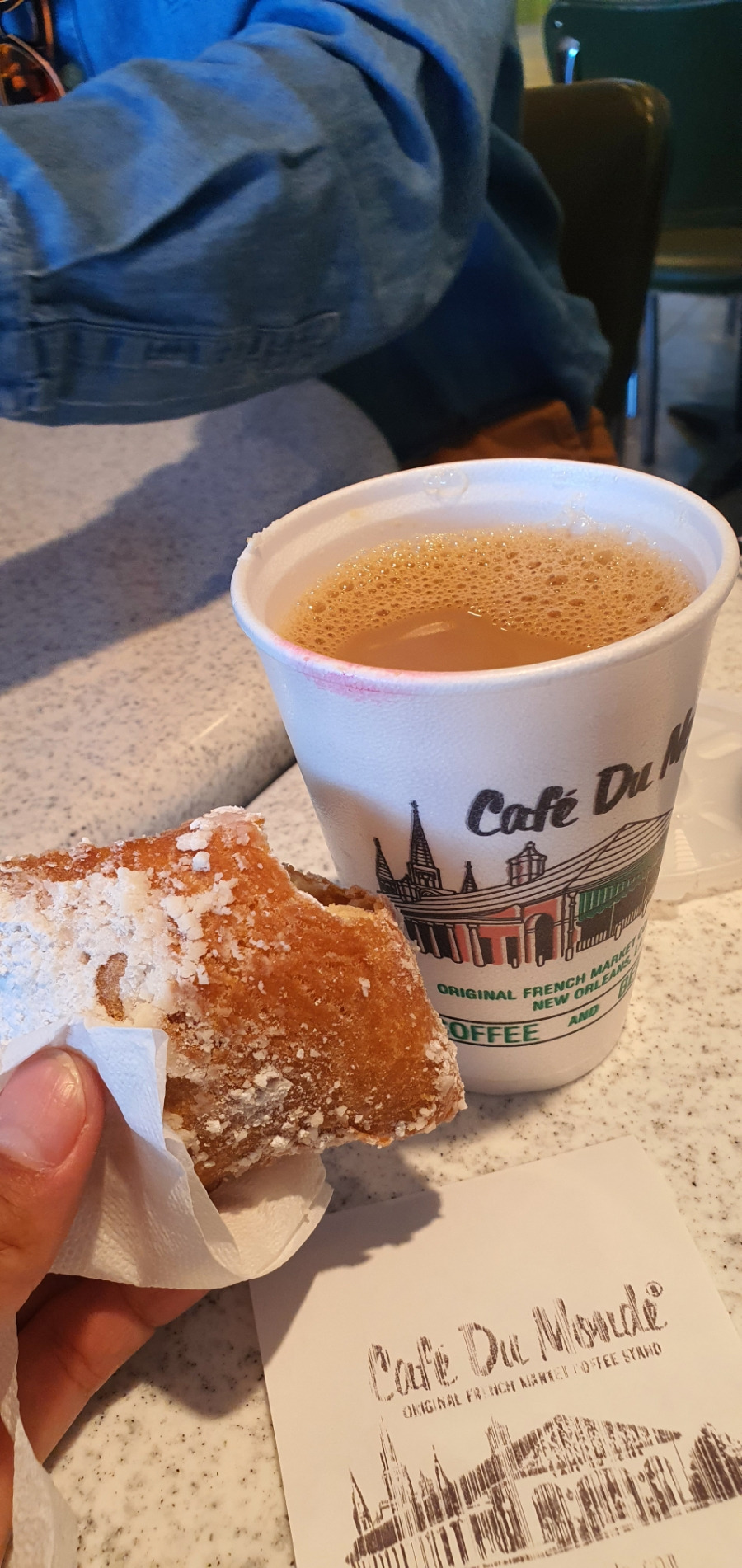베네도넛으로 유명한 <Café de Monde>에서 도넛과 커피 한 잔을 즐긴다. 입은 즐겁지만, 마음 한편이 아주 편하지는 않다. Public parking lot에 1시간 주차요금만 결재해 뒀기 때문이다.