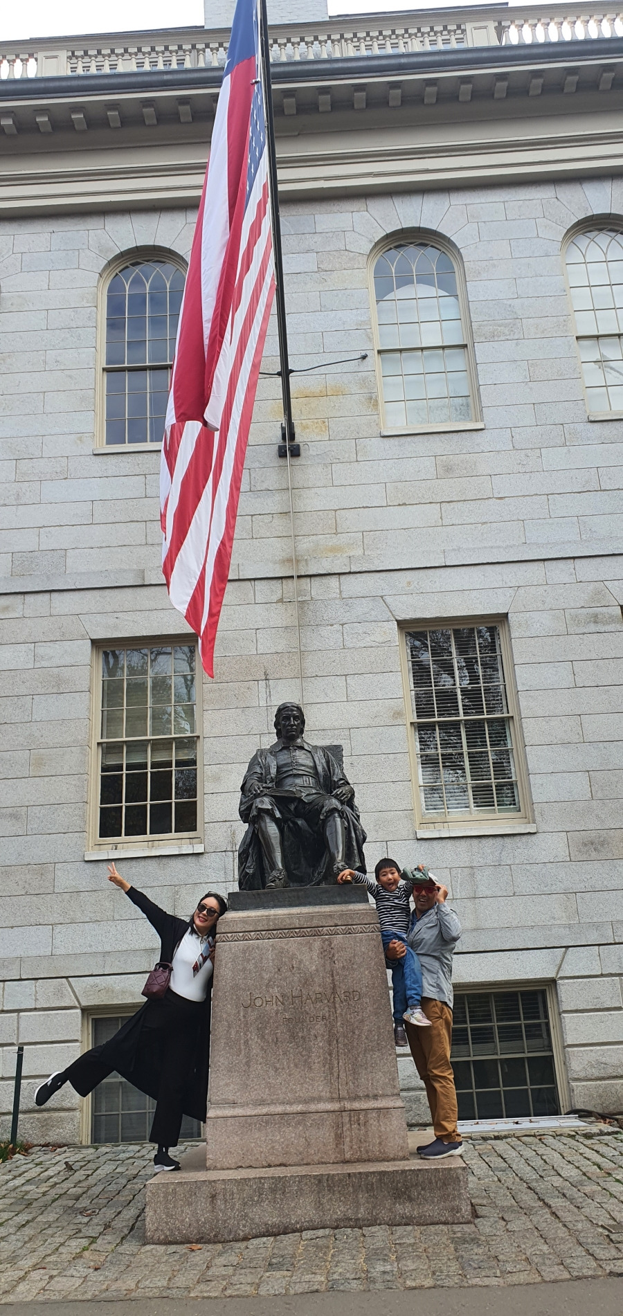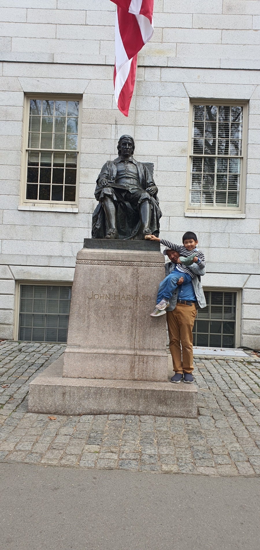 하버드 동상 앞에서 왼쪽 구두를 만지며 인증샷! 정우도 하버드에 오고 싶은걸까?