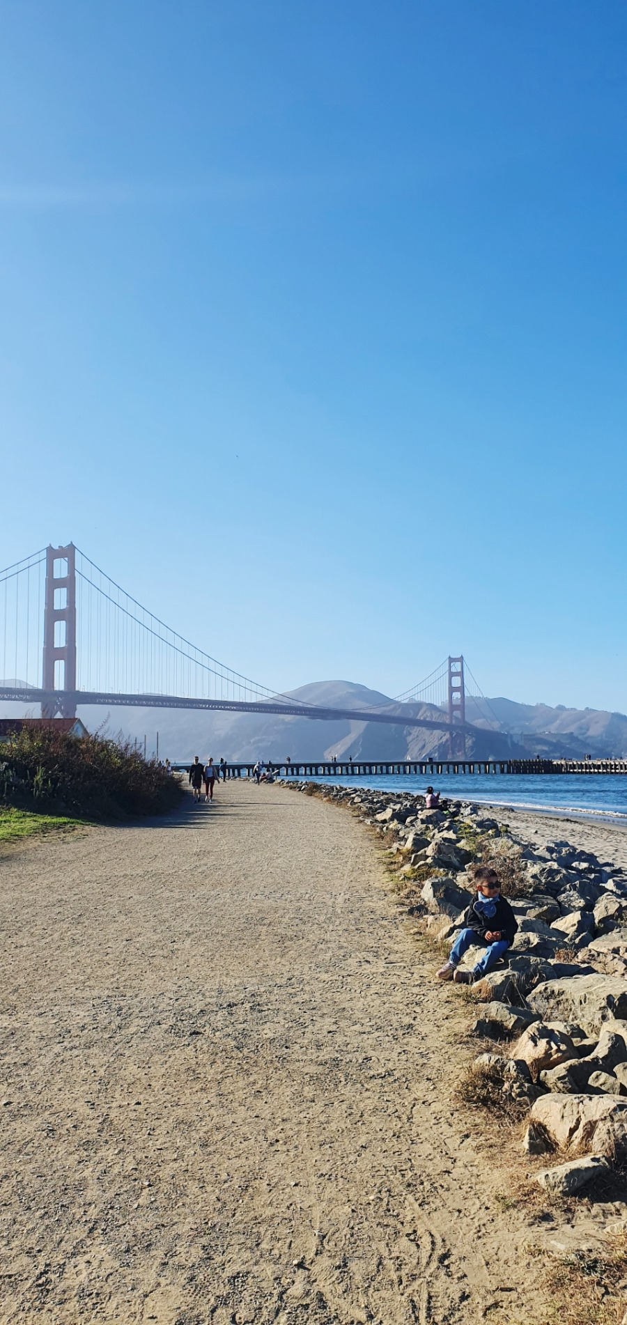 금문교 아래부터 다운타운으로 이어지는 해안가 옆 산책로는 샌프란에서 가장 평온했다. 걷기 편안하게 조성된 흙길 산책로를 한 시간 넘게 걸으며, 파도 소리를 들을 수 있던 최고의 시간이다. 정돈되어 깔끔하고 조화롭던 시드니와 다르지만, 날 것의 느낌도 괜찮다. 샌프란시스코는 깔끔함을 기대하기 힘들다. 큰 땅덩어리에 대도시를 만드는 데 모든 요소요소가 철저히 계획대로 만들어지기 어려웠을 거다. 하루 동안 꽤 많은 일들을 해냈다는 뿌듯함이 든다. 사람이 참 중요하다. 호텔에서 만난 스페인 직원이 오늘 여정을 더욱더 신나게 해 주었다. 남편의 어깨가 으쓱해하는 모습을 보며, 소소한 것에 행복할 수 있는 우리라 감사한 하루다.