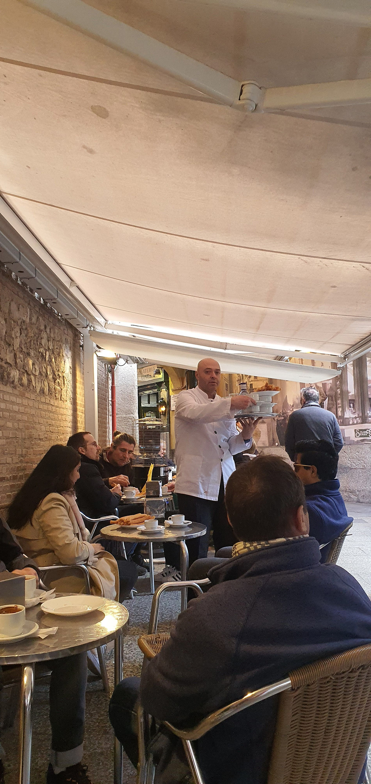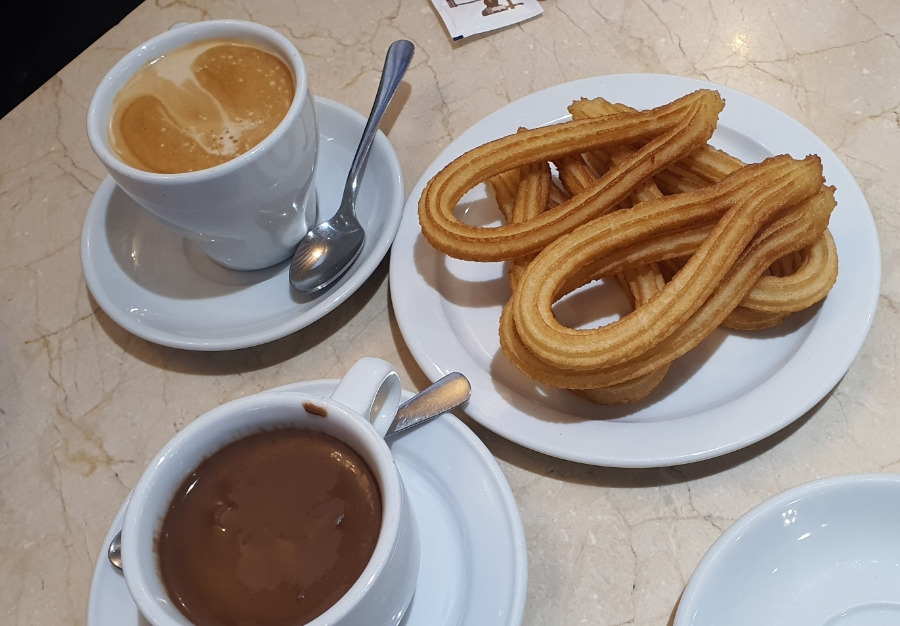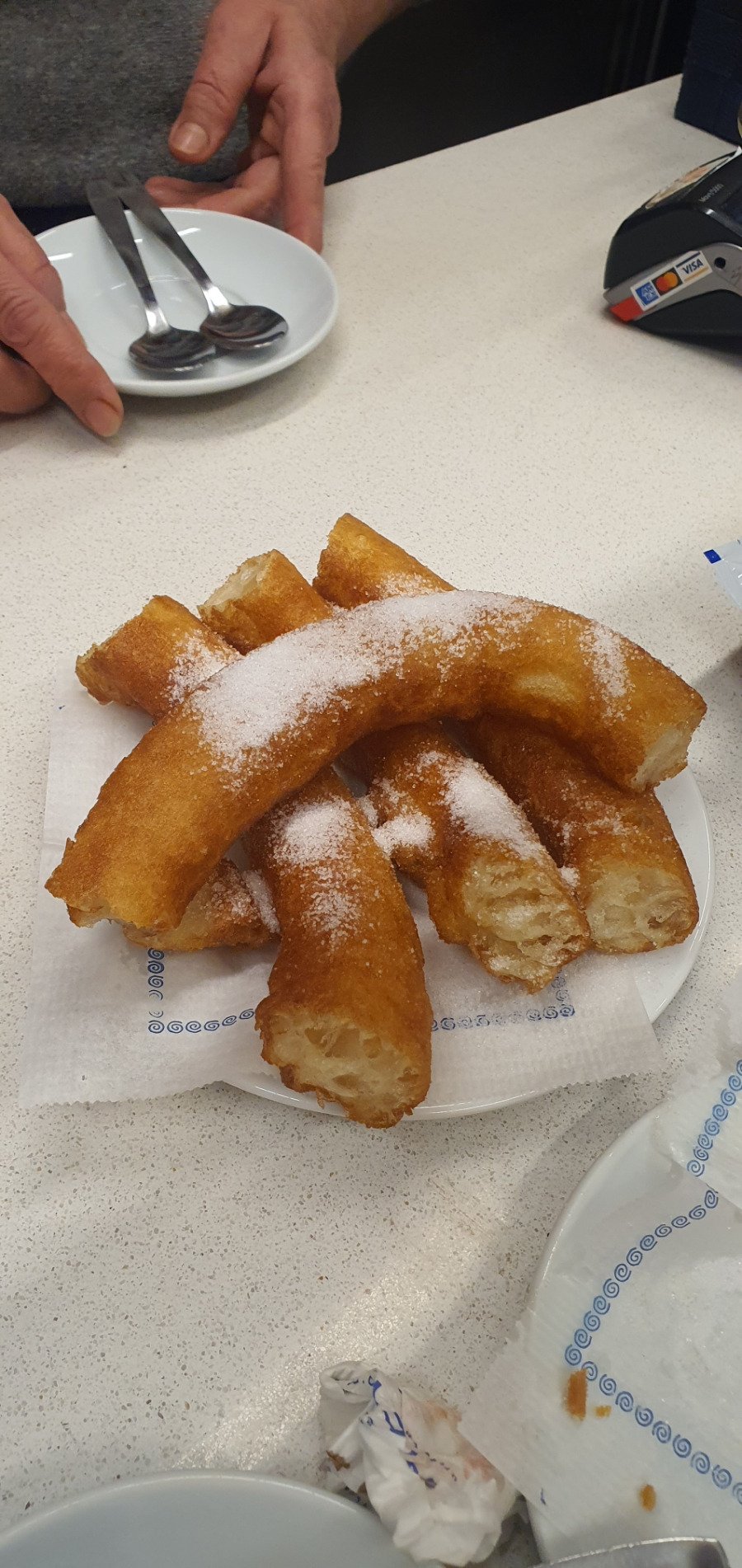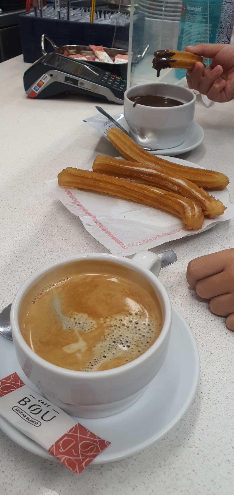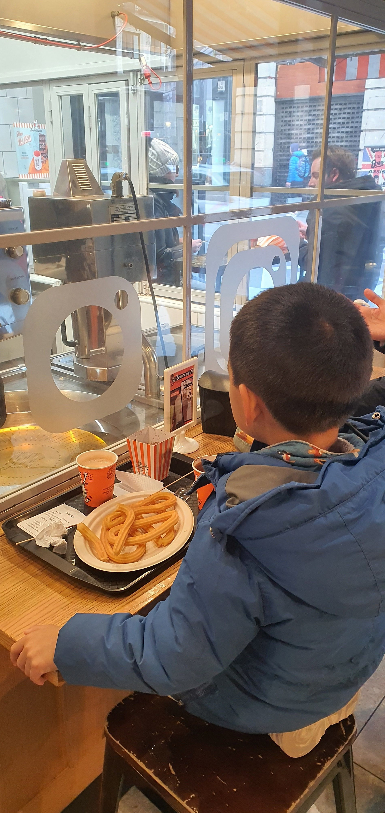 숙소에서 멀지 않은 곳에 유명한 츄레리아를 찾았다. 1962년부터 60여 년 업력을 자랑하는 노포다. 어쩐지 허름한 외관임에도 로컬들로 붐빈다. 출근길에 잠시 들러 카페 한 잔과 추로스를 즐기는 모습에서 스페인 특유의 여유로움이 묻어난다. 추로스를 처음 입에 넣은 아이의 커다란 눈이 더 커졌다.