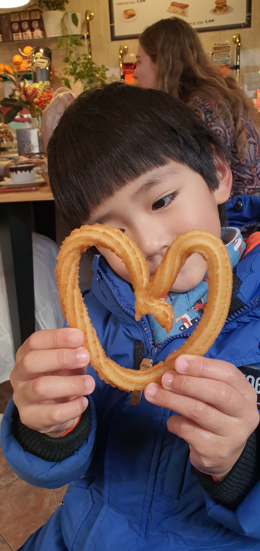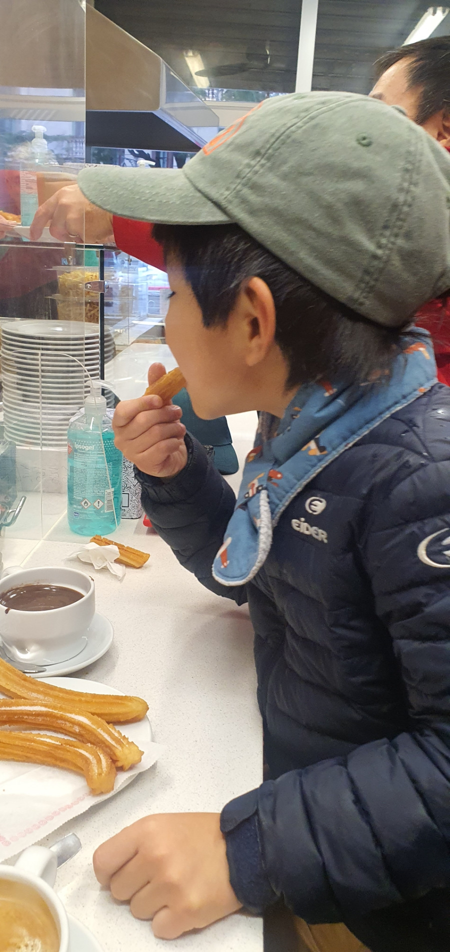미식의 나라 스페인에서 맛있는 음식이 정말 많았지만, 정우에게 '스페인 = 추로스'로 각인된 모양이다. 아직까지도 종종 "엄마~ 츄~~로스 먹고싶어!! 우리 스페인 다시 가자!!"며 졸라대곤 한다. 매일 오전, 바삭한 추로스와 초콜라떼, 까페 꼰네체로 시작하던 하루. 덕분에 스페인은 우리에게 달콤한 기억으로 남았다.