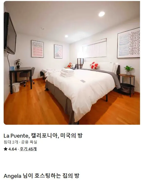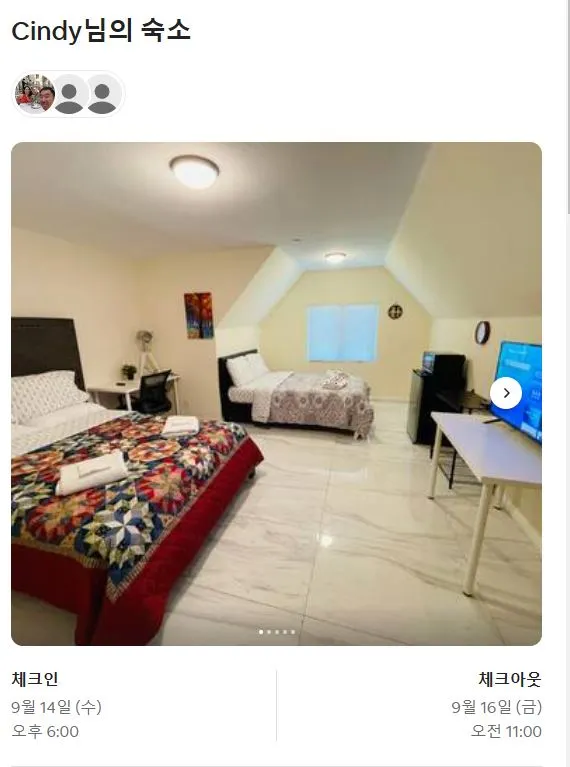 우리가 예약한 LA의 Cindy네 숙소와 언제 예약되었는지 지금도 미스테리인 Angela의 숙소