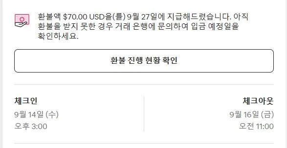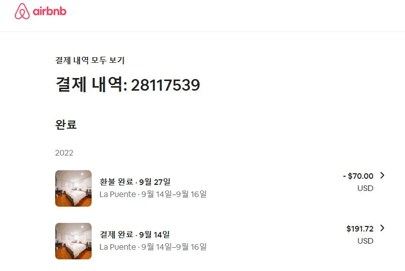우리 상황을 인지한 에어비앤비 고객센터에서 둘째 날 비용의 일부를 환불해 주었다. 190달러를 날렸다고 낙담했는데, 생각지 못한 70달러가 생겼다. 오늘도 행복한 하루다.